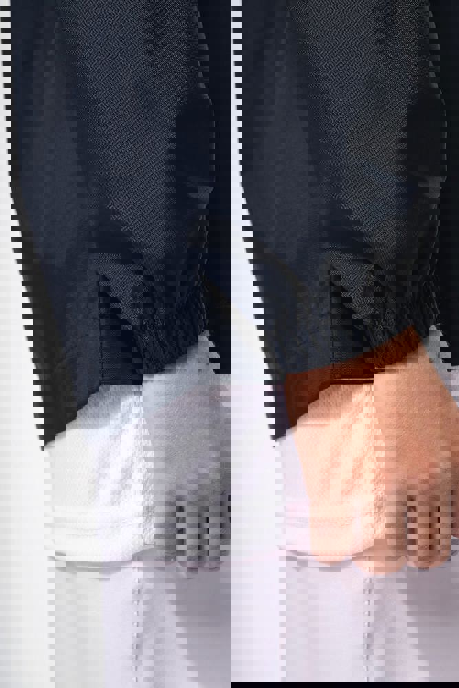 100% polyamide Oxford. PU-versteviging. Waterdichte stof 1500 mm. Thermisch verzegelde naden aan de armsgaten. Raglanmouwen. V-hals met 1x1 ribboord. Verluchtingsgaatjes in de oksels. Contrasterend biesje aan de armsgaten. Elastische mouwuiteinden. Zoomafwerking onderaan. Afneembaar merklabel.