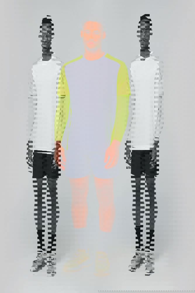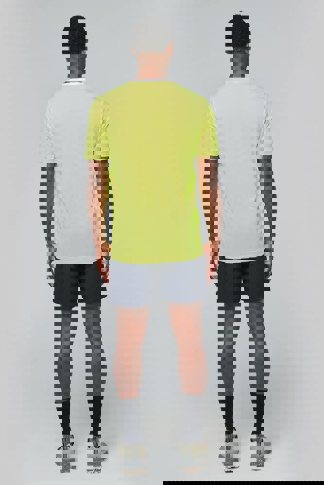 100% post-consumer gerecycled birdseye-polyester. Lichte, sneldrogende stof. Rechte snit. Ronde hals met nektape. Ingezette mouwen. Contrasterende uitsnijdingen op schouders, mouwen en paneel met biesje voor- en achteraan. Dubbel stiksel op mouwuiteinden en boord onderaan. Afneembaar merklabel.