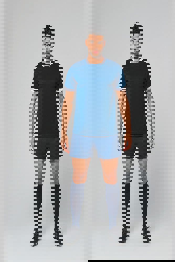 100% polyester. Interlock. Rechte snit. Cut-and-sew-techniek. Ronde hals in 1x1 ribtricot in contrasterend wit voor alle kleuren, met toon-op-toon interlock-inzetsel. Mouwuiteinden in 1x1 ribtricot in contrasterend wit voor alle kleuren. Toon-op-toon nektape van interlock. Verstevigde naden met dubbel stiksel aan de mouwuiteinden, de schouders en aan de zijkanten. Afwerking met dubbel stiksel aan de onderkant. Afneembaar merklabel.
