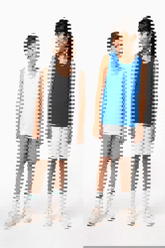 100% birdseye-polyester. Lichte, sneldrogende stof. Biesje aan halsopening en armsgaten. Dubbel...meer