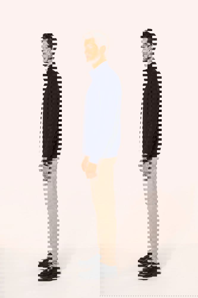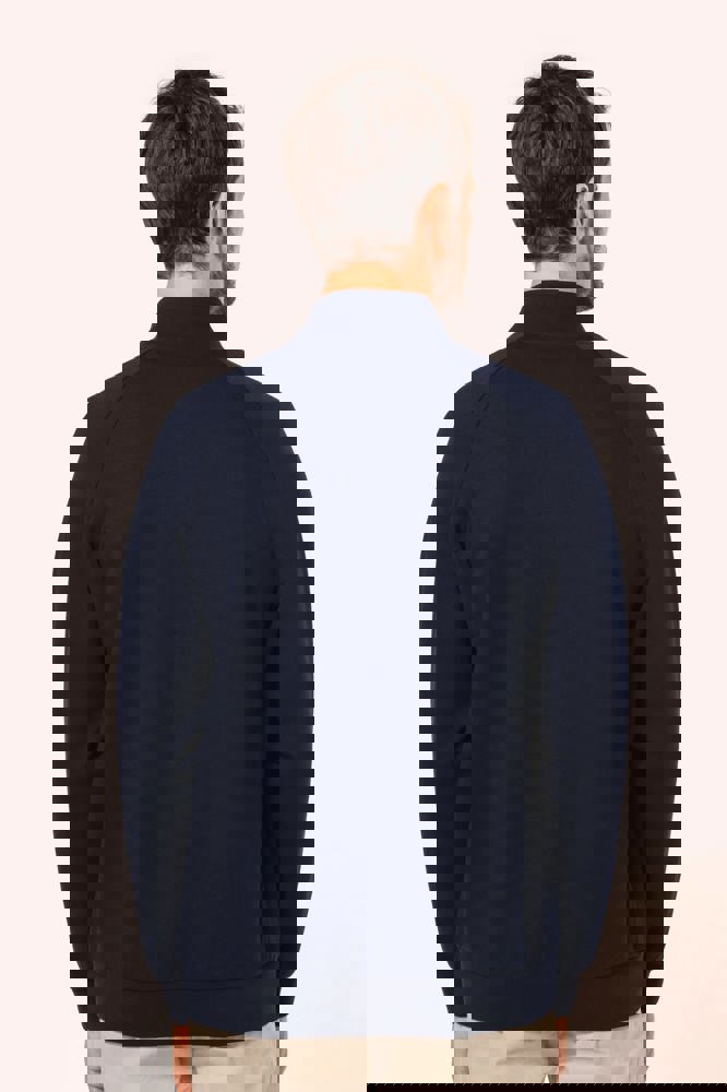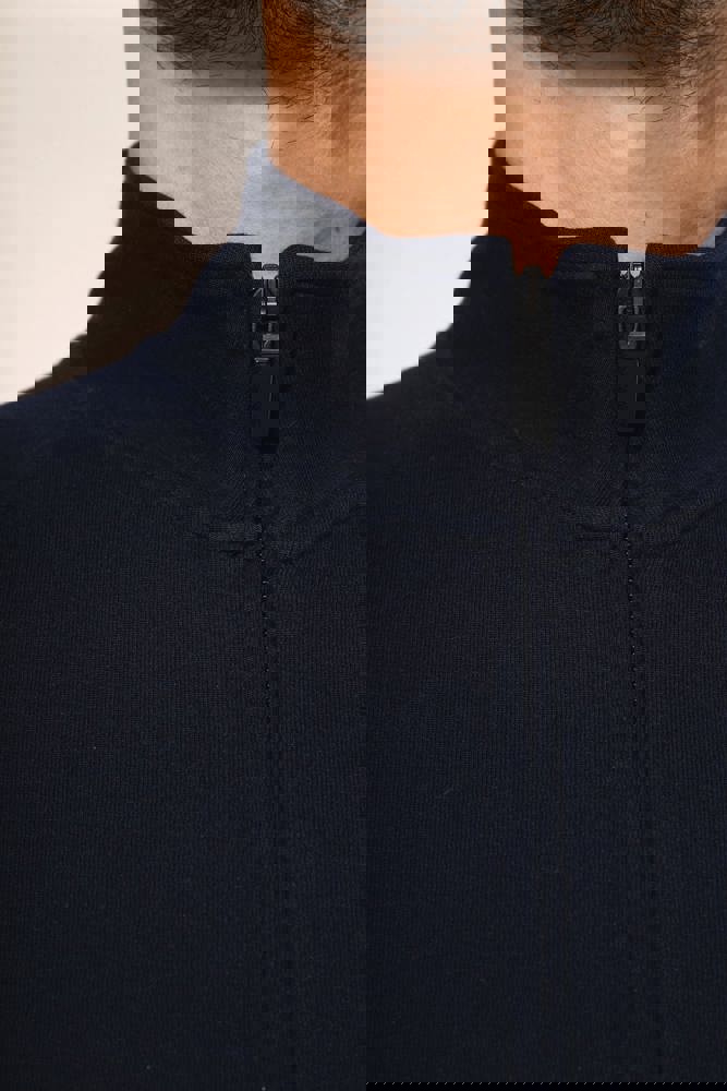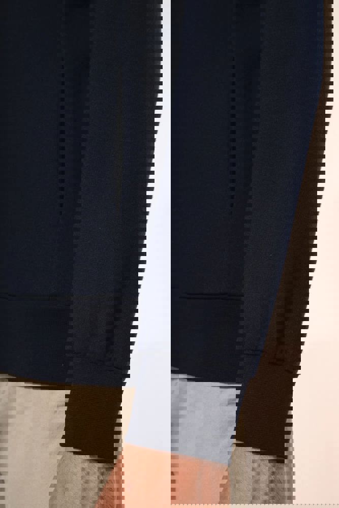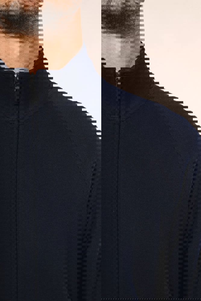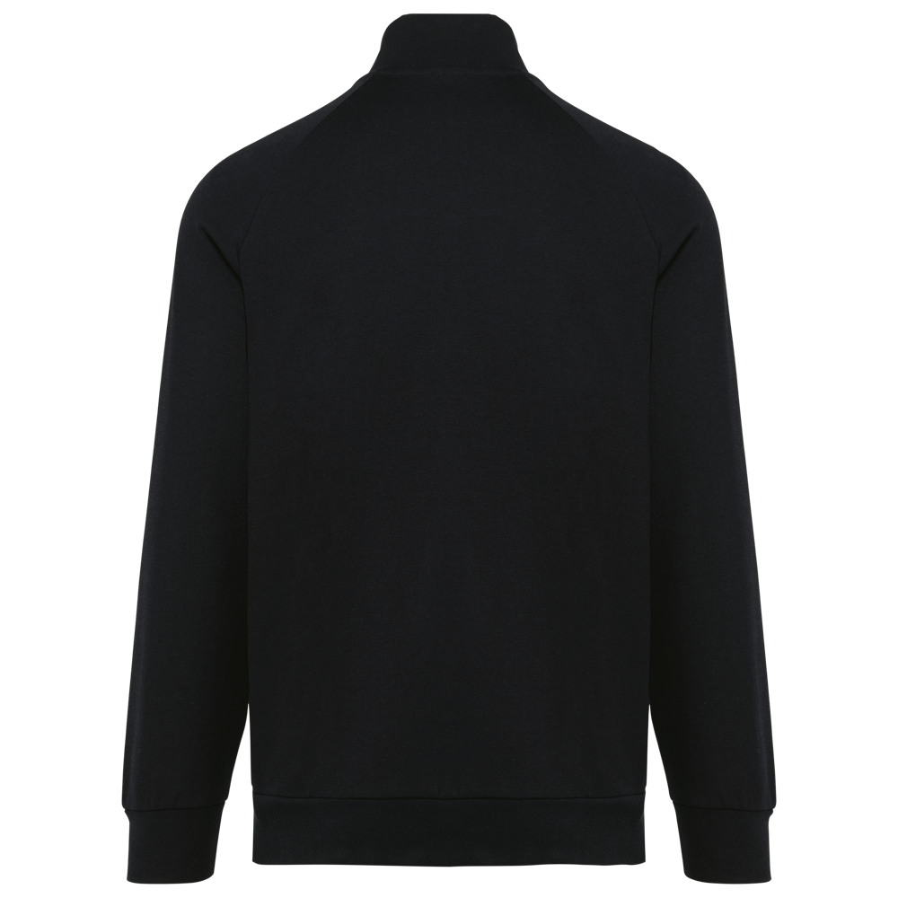 70% katoen / 26% polyester / 4% elasthan. Gekamd katoen. Interlockstof. LSI-behandeling (Low Shrinkage Interlock). Stiksel in de kraag. Nektape aan de binnenkant van de halsopening. Ton-sur-ton nylon rits met metalen trekker en nektape aan de binnenkant. Raglanmouwen. 1x1 ribboord. 2 zakken in de naad van het inzetsel. Geen merklabel, maar enkel een maatlabel voor eenvoudige personalisatie.