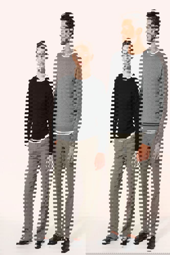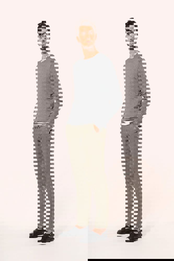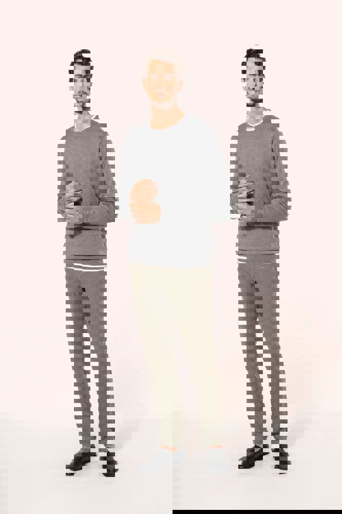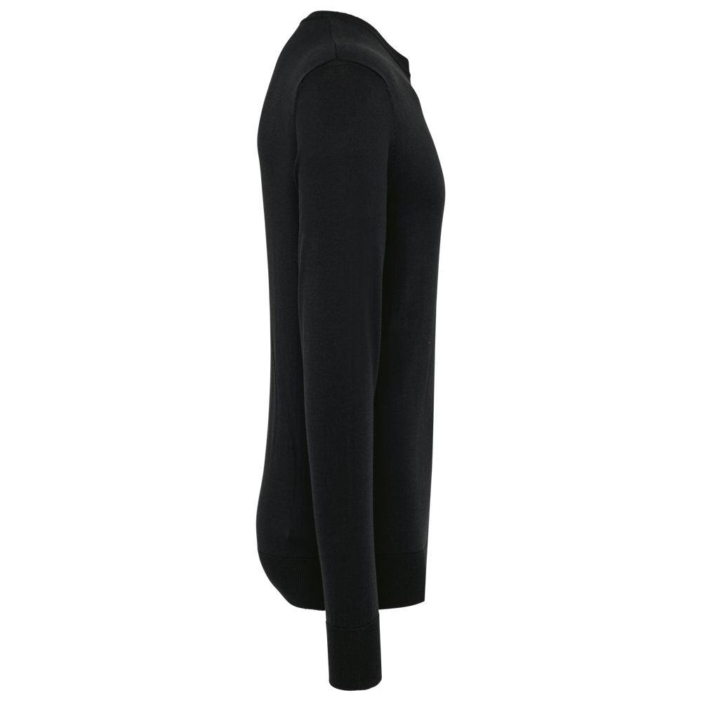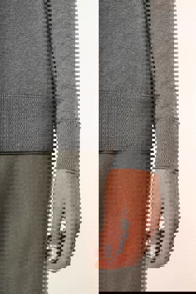 100% Supima® katoen. Gekamd katoen. Gauge 12. Stof van topkwaliteit. Fully-fashioned: gebreid in de vorm en geassembleerd op de machine. Halsopening, mouwuiteinden en onderkant in 1x1 ribboord.