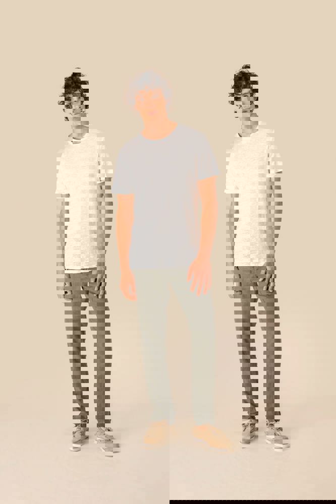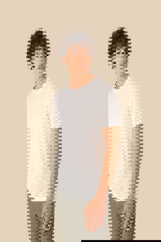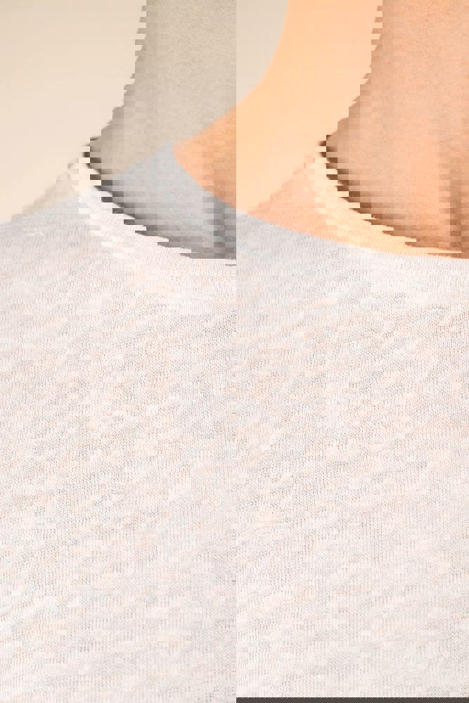 100 % Linnen. Tricot. Rechte snit. Zijnaden. Hals in de hoofdstof. Nektape in de hoofdstof in de kraag. Zoom met dubbel stiksel aan de mouwuiteinden en onderkant.