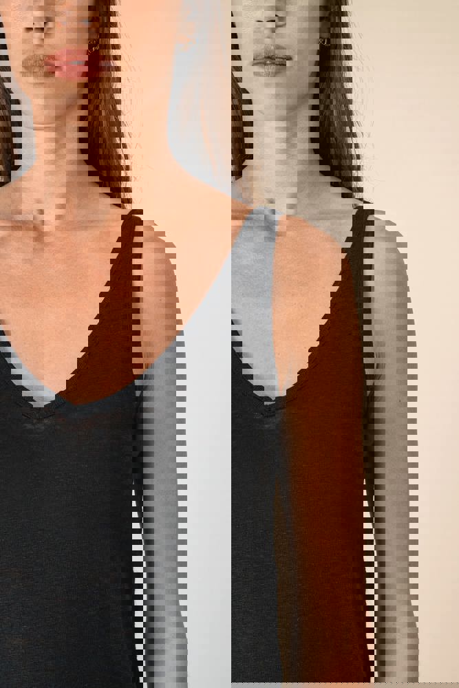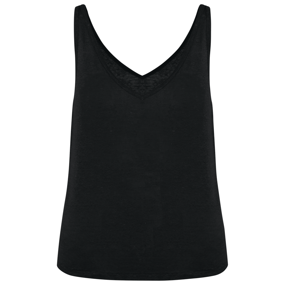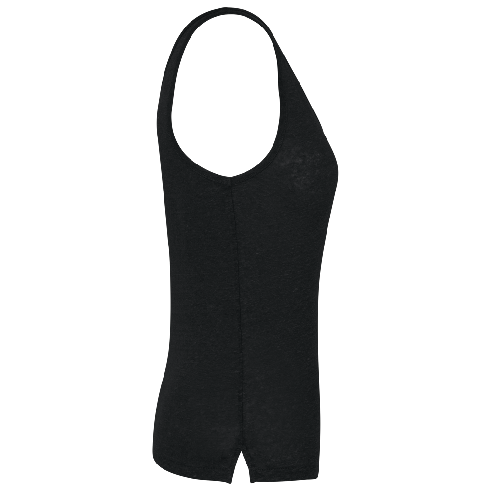 100% linnen. Tricot. Regular fit. Halsopening aan de voorkant en V op de rug. Bies in hoofdmateriaal en biesstiksel op de halslijn en mouwinzetten. Splitten aan de zijkanten. Zoom met enkel stiksel onderaan. Certificering in uitvoering.