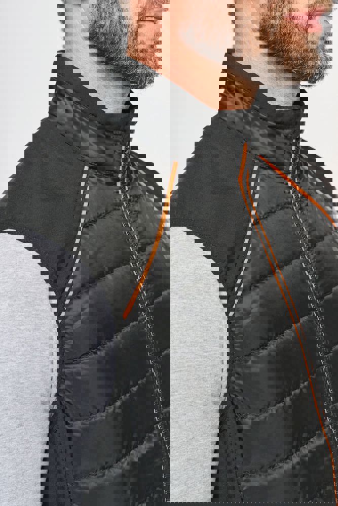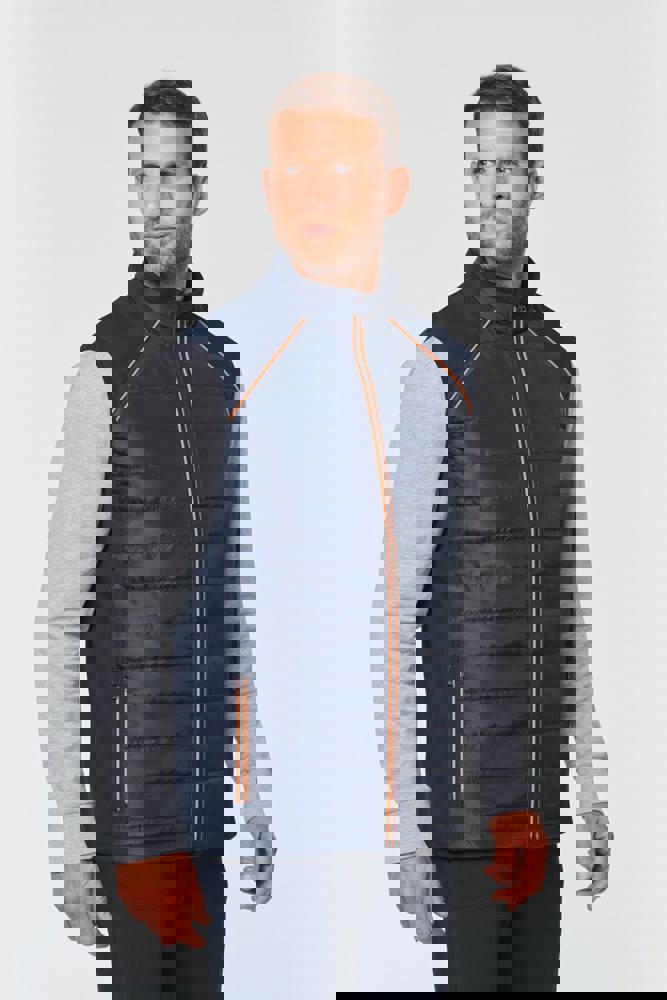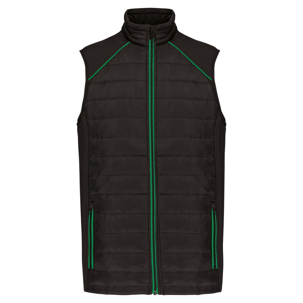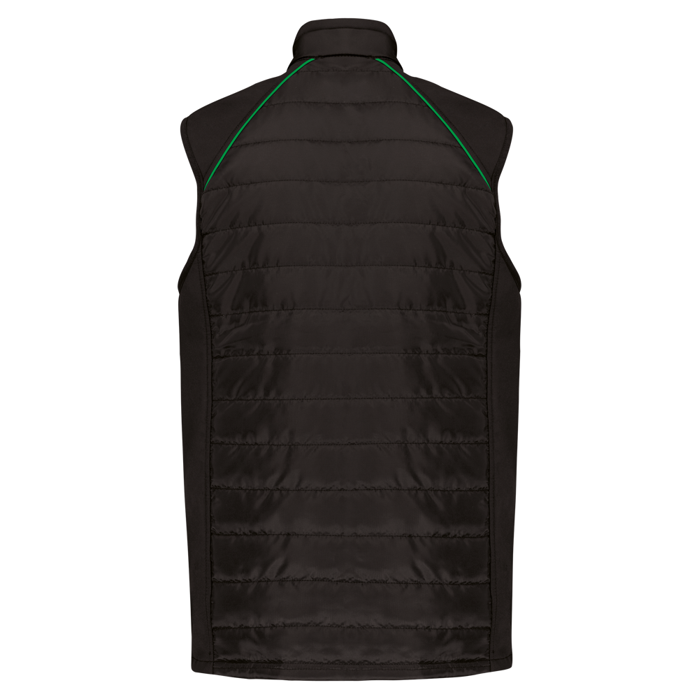 100% polyester. Softshell 2 lagen, in de 4 richtingen rekbare stof voor meer bewegingsruimte en met binnenlaag in fleece voor meer warmte aan de zijkanten en op de schouders. Voorkant en achterkant: 100% polyester 75 g taf 230T met coating. Waterafstotende stof. 2 ritszakken aan de voorkant. 1 naametiket links aan de binnenkant. Contrasterende bies aan de raglannaad van de mouwopeningen en in de kraag. Ritssluiting vooraan en contrasterende zakken. Blinde drukkersrits onderaan. Ideaal voor dagelijks gebruik.
