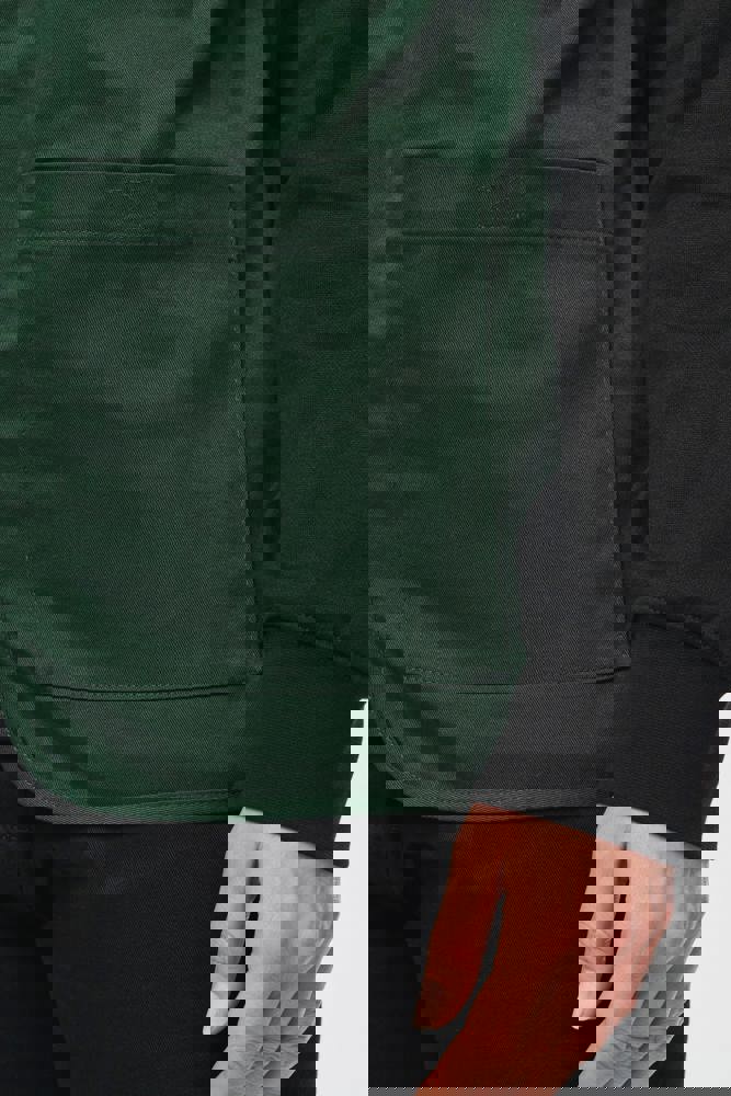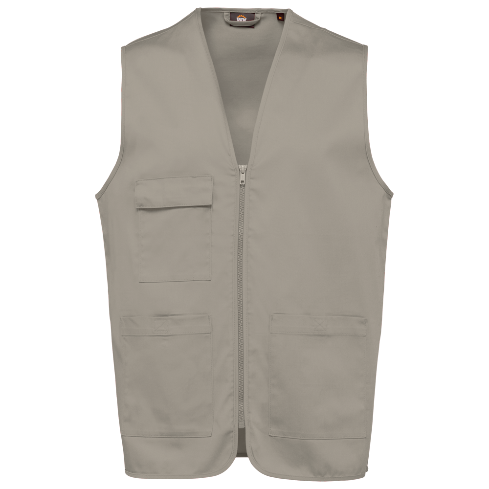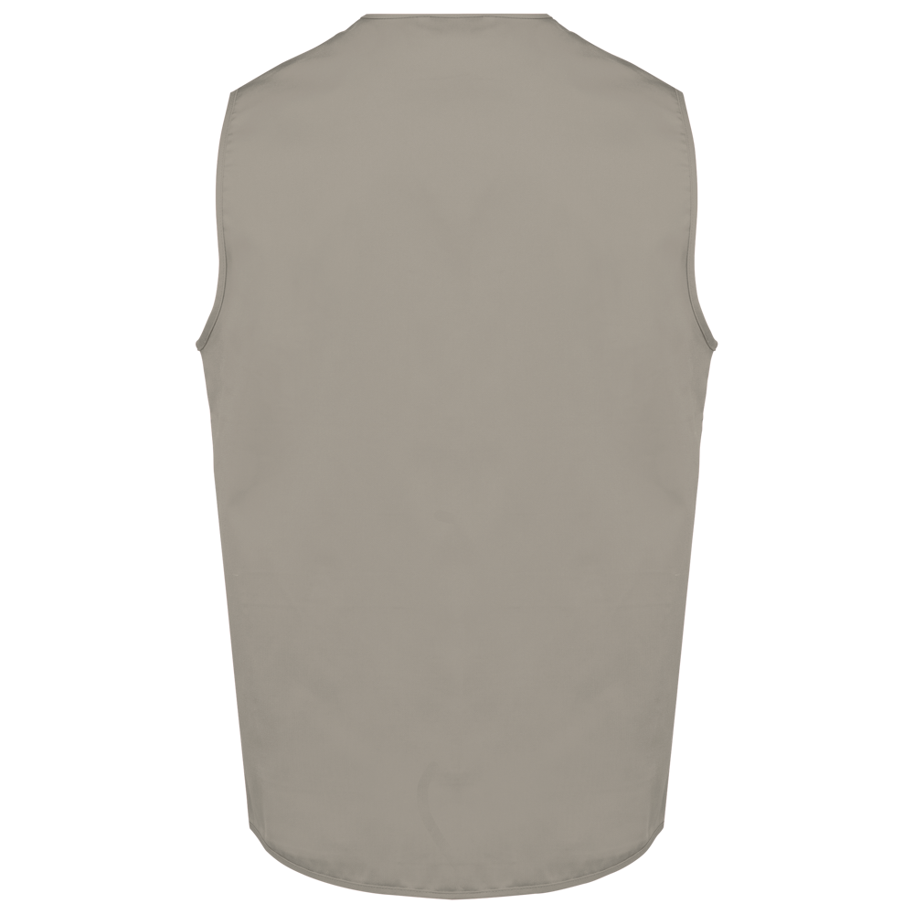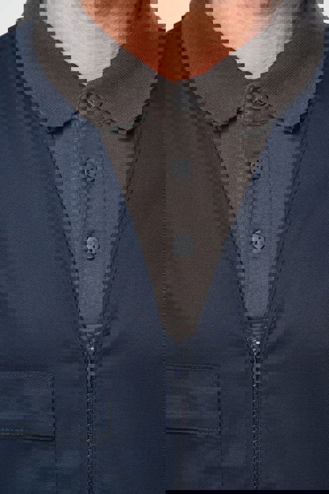 Buitenkant: 65% polyester / 35% katoen. Rechte snit. 2 grote opgezette zakken met klittenbandsluiting aan de voorkant + 1 opgezet borstzakje met 1 pennenvakje. Ton-sur-ton plastic ritssluiting. Ophanglus in de kraag. Licht verlengd achterpand. Ton-sur-ton biesje aan de mouwopeningen en de rand van het kledingstuk. Naamlabel aan de binnenkant. Tear-away merklabel.