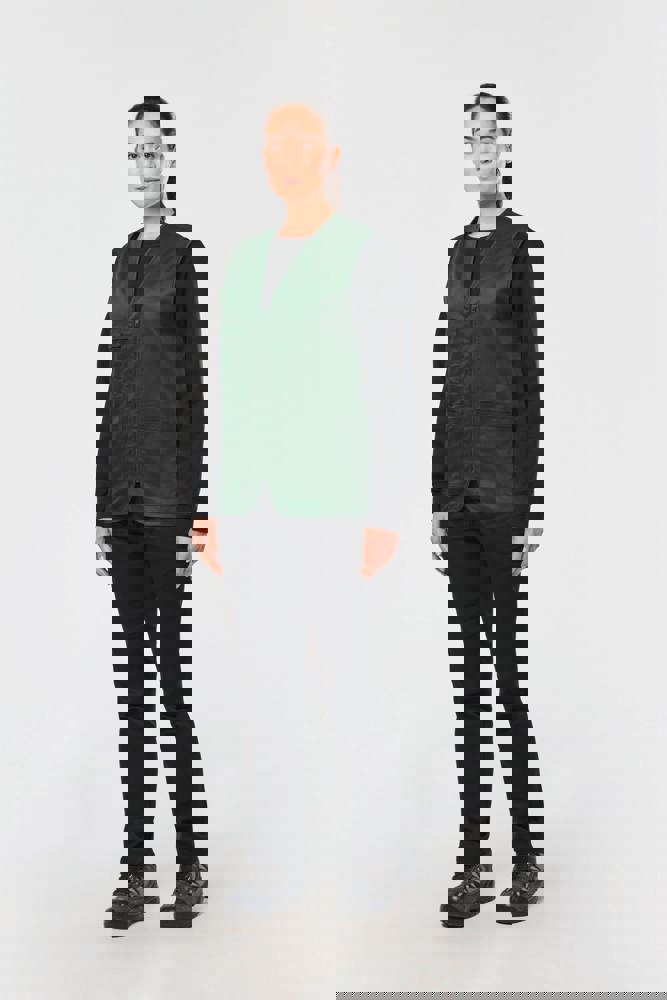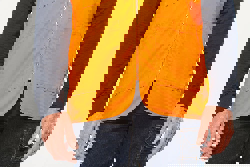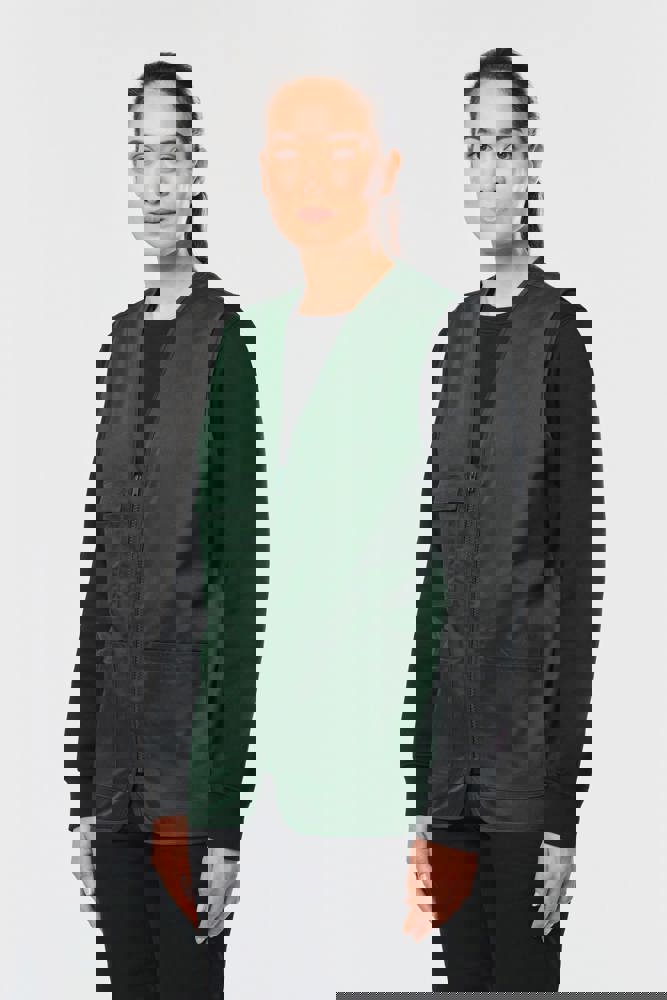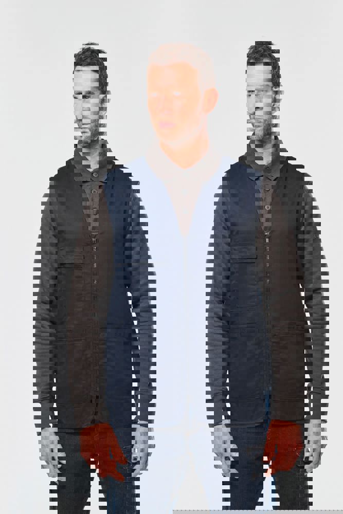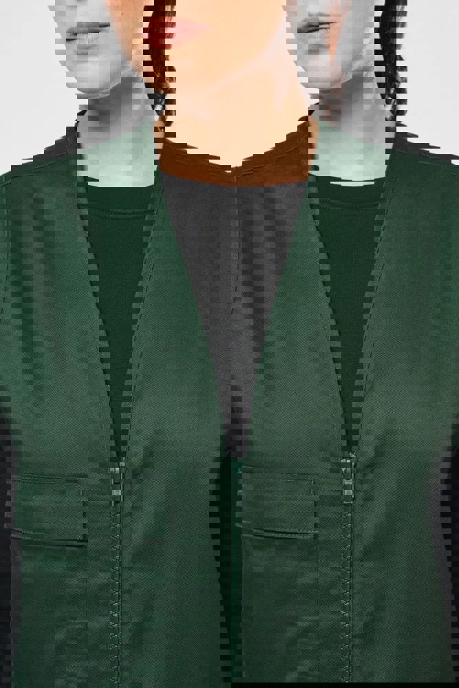 Buitenkant: 65% polyester / 35% katoen. Rechte snit. 2 grote opgezette zakken met klittenbandsluiting aan de voorkant + 1 opgezet borstzakje met 1 pennenvakje. Ton-sur-ton plastic ritssluiting. Ophanglus in de kraag. Licht verlengd achterpand. Ton-sur-ton biesje aan de mouwopeningen en de rand van het kledingstuk. Naamlabel aan de binnenkant. Tear-away merklabel.