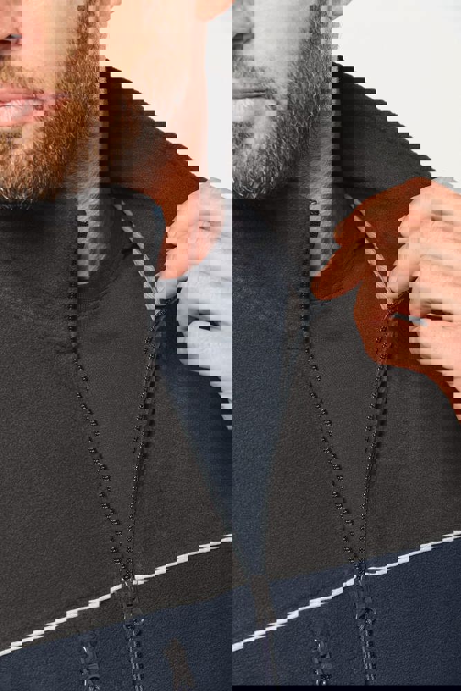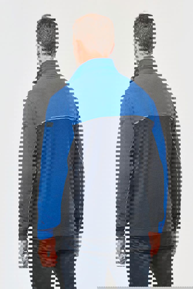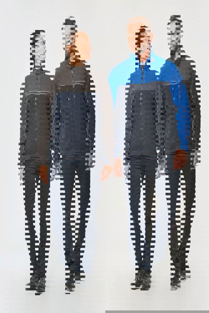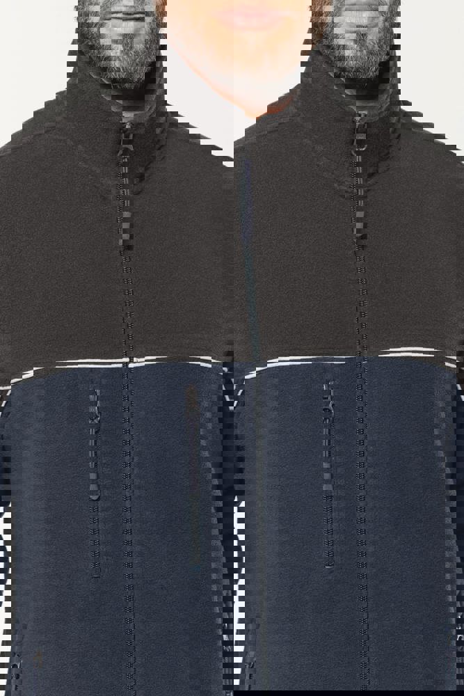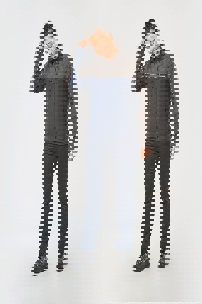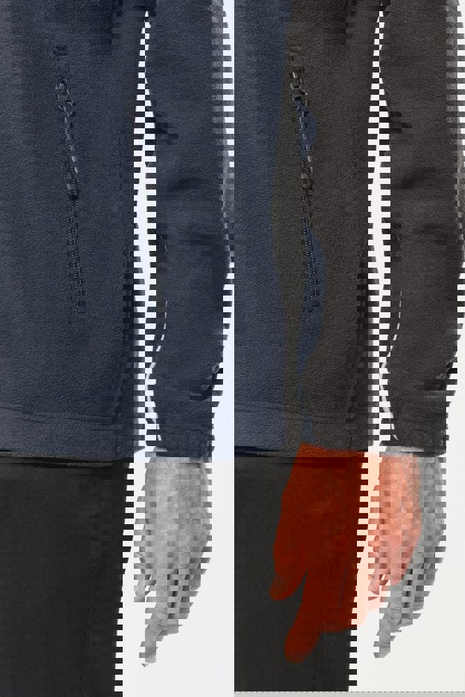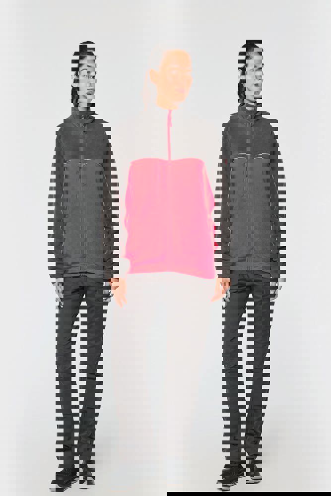 100% polyester. Gemaakt van 100% gerecycleerd polyester. Anti-pluis microfleece. Rechte snit. 2 ritszakken opzij + 1 borstzakje met rits Gerecycleerde toon-op-toon plastic ritsen met ritstrekker. Contrasterende nektape met visgraatmotief. Contrasterende bies tussen de tweekleurige delen van het kledingstuk (lichaam, voorkant mouwen en rug). Elastische penhouder met 3 vakken op de linkermouw. Ophanglint in de kraag. Elastische mouwuiteinden en boord. Tear-away merklabel.
