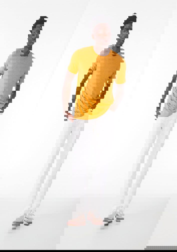 50% polyester / 25% ringgesponnen gekamd katoen / 25% rayon. Triblend materiaal. T-shirt met ronde hals en korte mouwen. Getailleerde snit. Zijnaden.