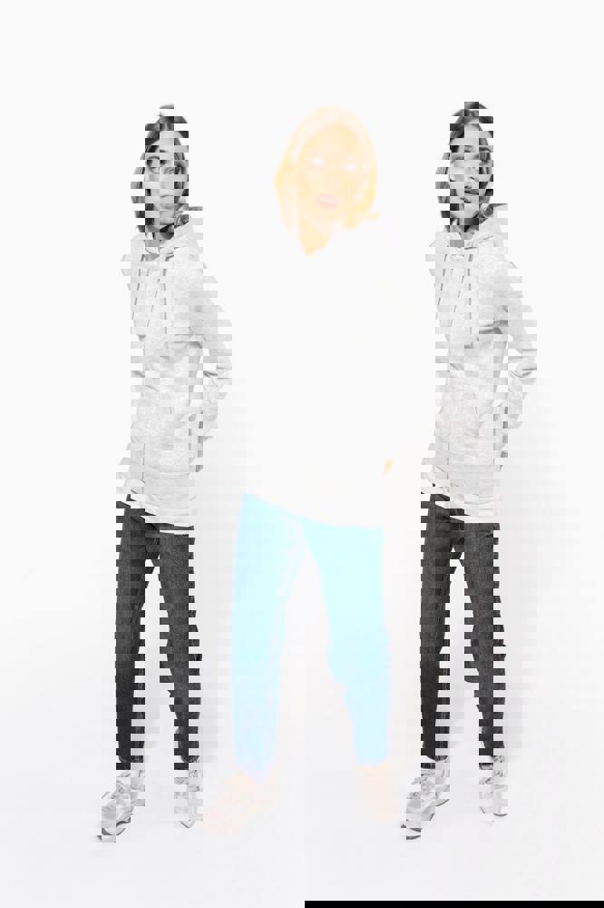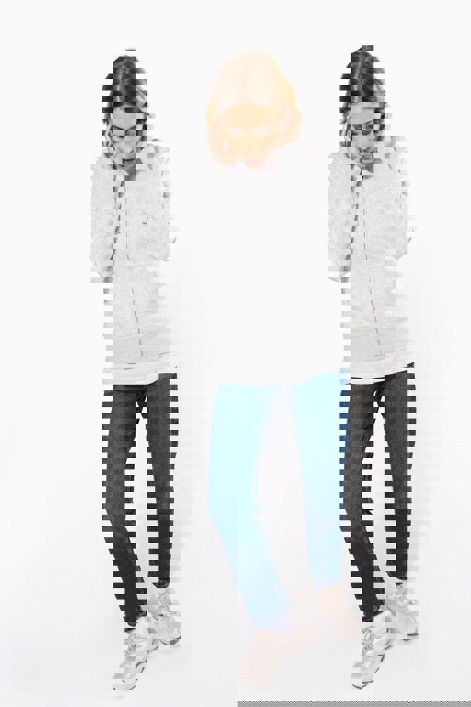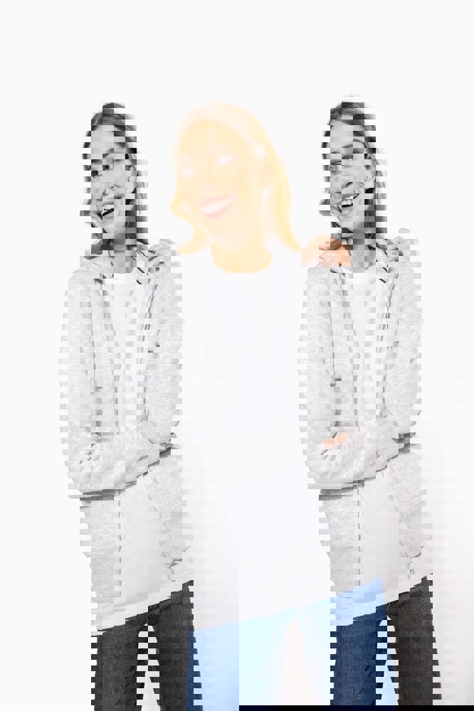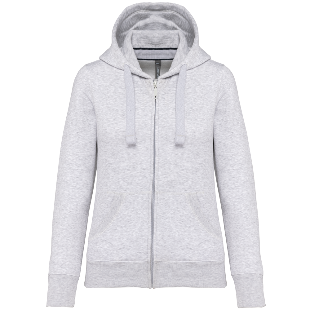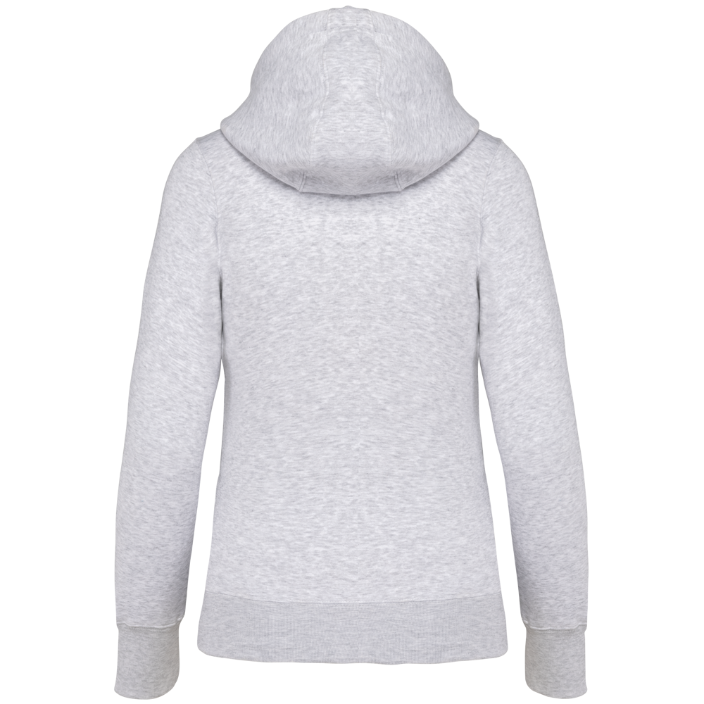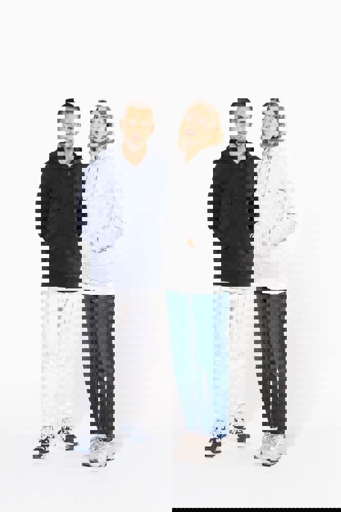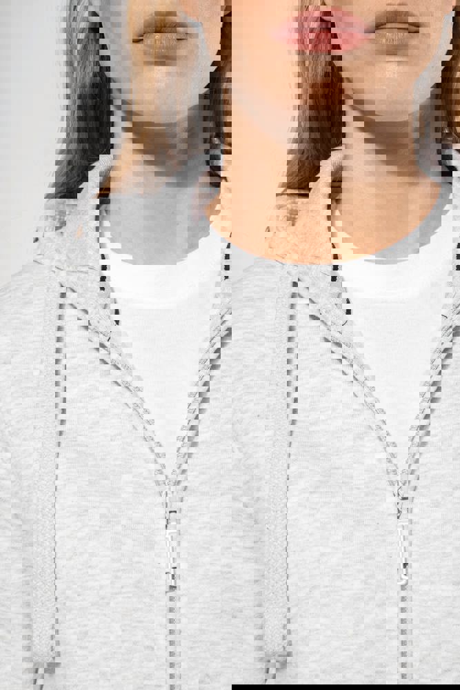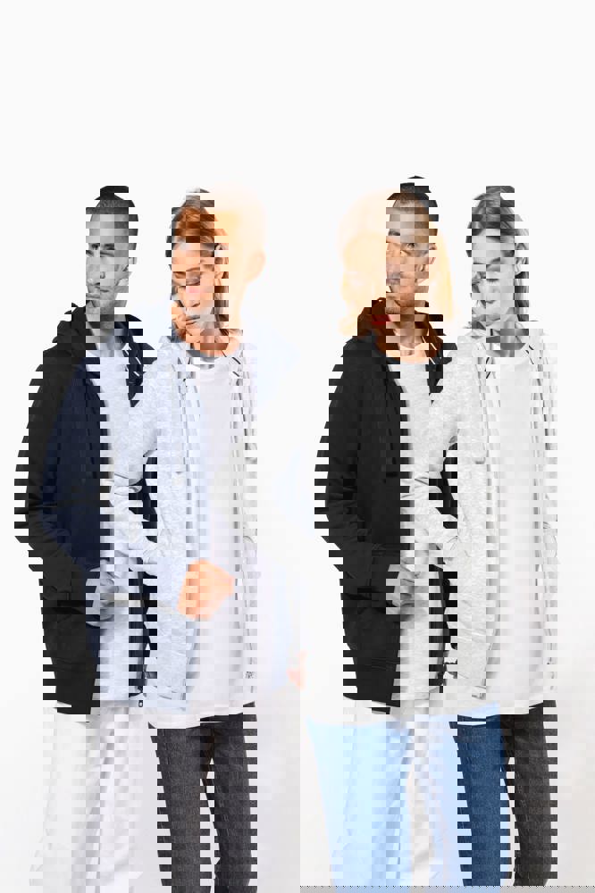 80% katoen / 20% polyester (Ash Heather: 79% katoen / 20% polyester / 1% viscose). Buitenoppervlak 100% gekamd katoen. Geborsteld fleece aan de binnenkant. Nektape in contrasterende kleur aan de halsopening (Navy voor kleur Oxford Grey en Ash Heather ; Oxford Grey voor alle andere kleuren). Gevoerde capuchon in honinggraatstructuur. Kangoeroezakken. Ribboord aan mouwuiteinden en onderkant kledingstuk. Ritssluiting.