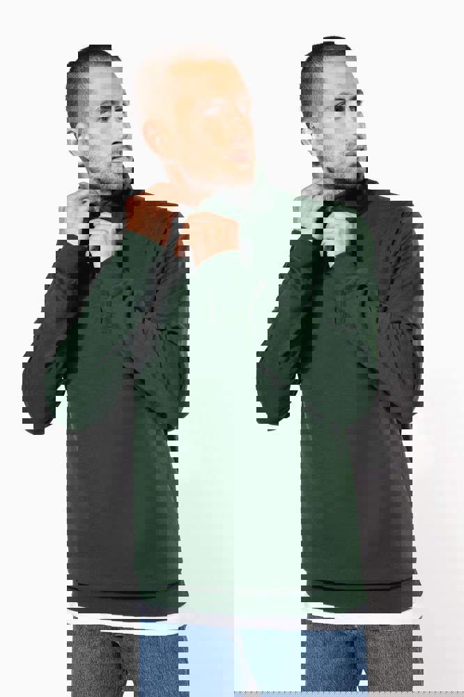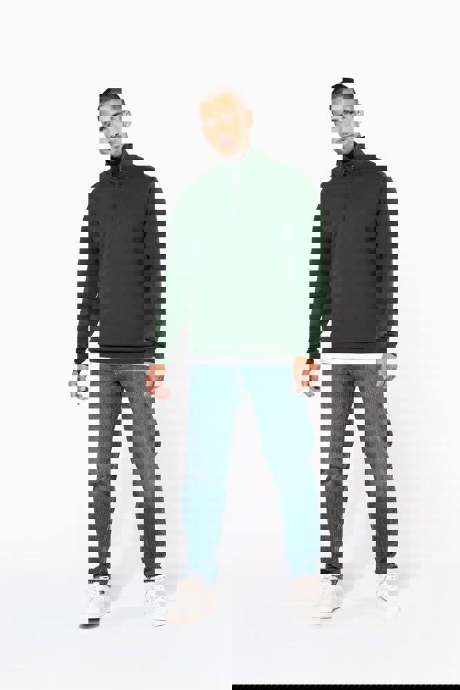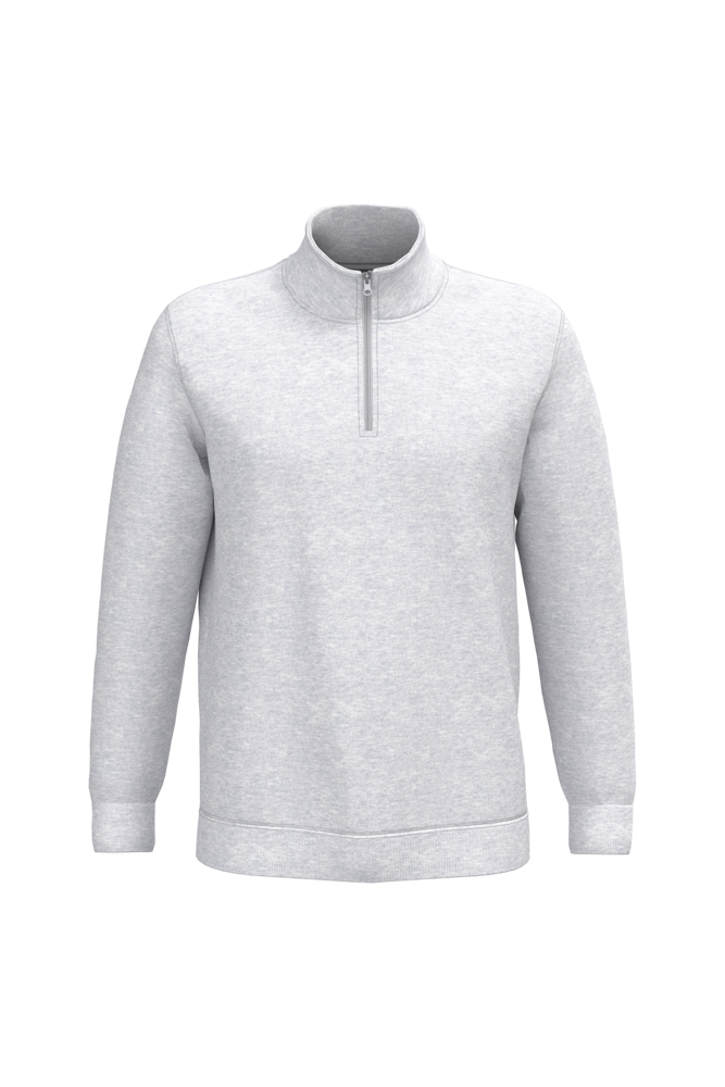 80% katoen / 20% polyester. Gekamd katoen. Geborsteld fleece aan de binnenkant. Ingezette mouwen. Ritshals met toon op toon nektape aan de binnenkant. Ribboord aan mouwuiteinden en aan de onderkant.