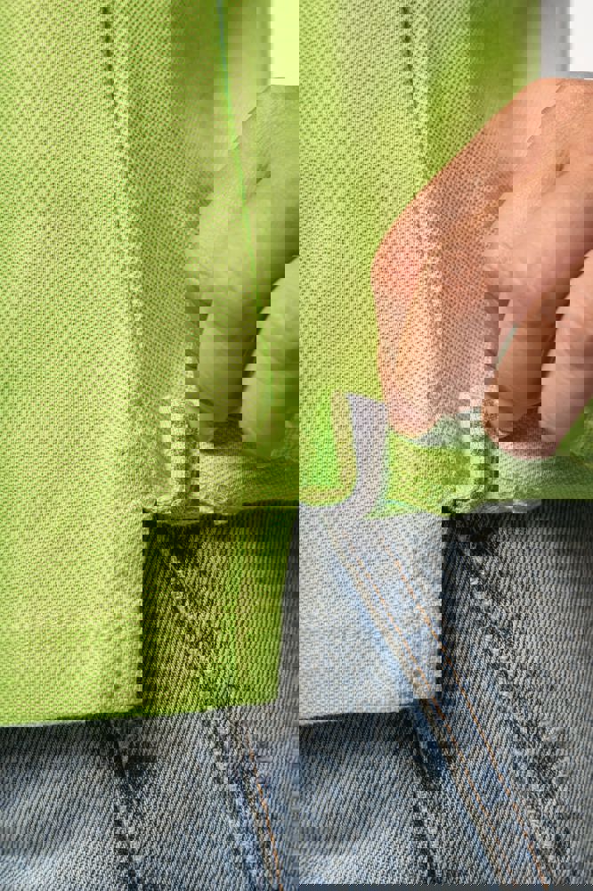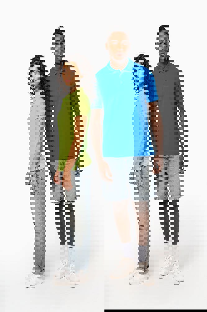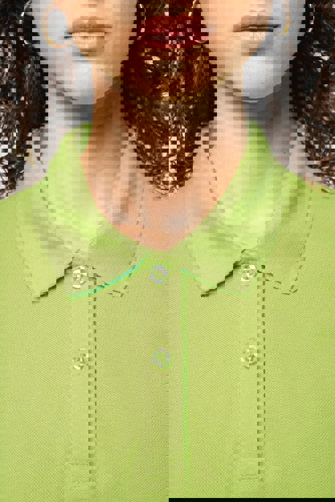 100% gekamd katoen - wasbaar op 60°C (Oxford Grey : 90% katoen / 10% viscose - wasbaar op 40°C). Piqué. Kraag in rib. Nektape en zijsplitjes in Oxford Grey voor alle kleuren behalve Oxford Grey daarvan zijn ze Dark Grey. Knooplijst met 2 knopen. Afwerking met dubbele stiksels aan de onderkant. Mouwuiteinden in rib.