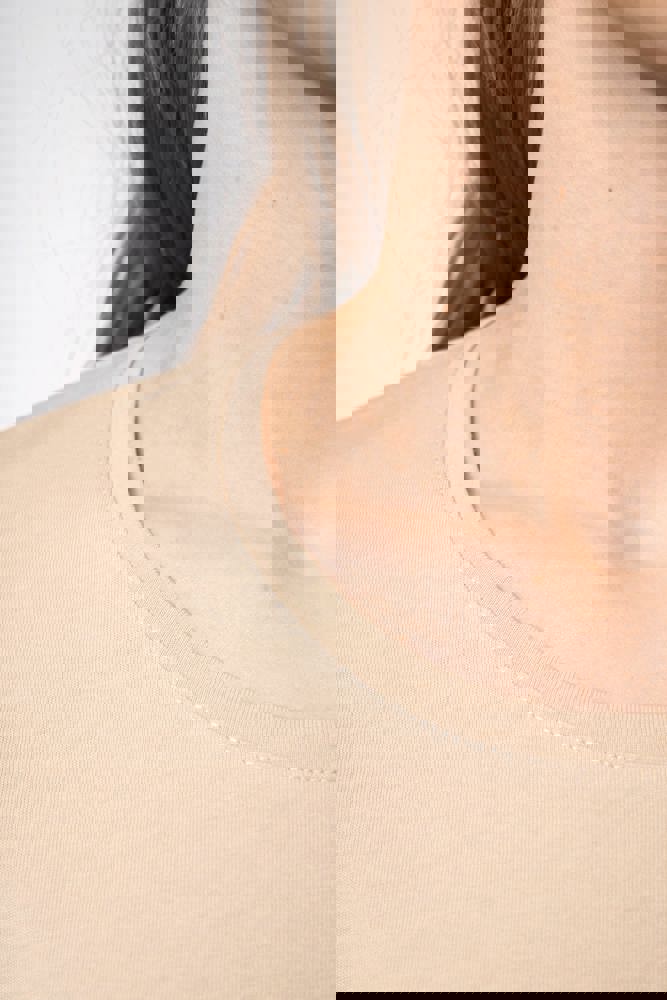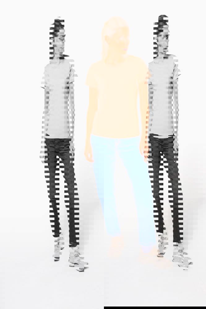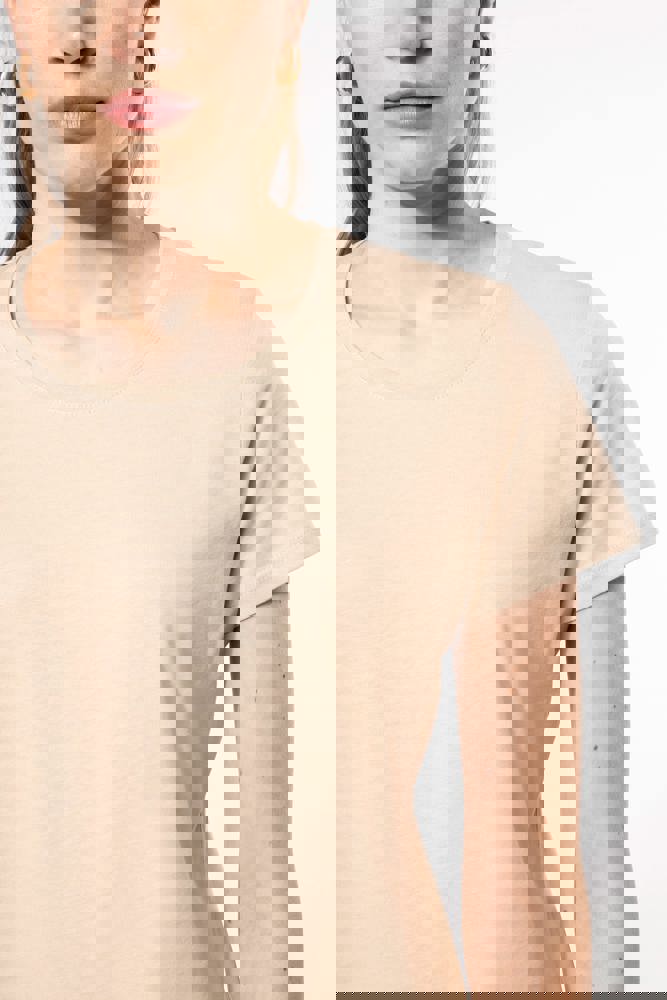 Effen kleuren : 100% katoen. Oxford Grey : 90% katoen / 10% viscose. Gekamd enzymbehandeld katoen. Getailleerde snit. Nektape (toon-op-toon voor White, Dark Grey voor Oxford Grey en Oxford Grey voor de overige kleuren). Afwerking met dubbele stiksels.