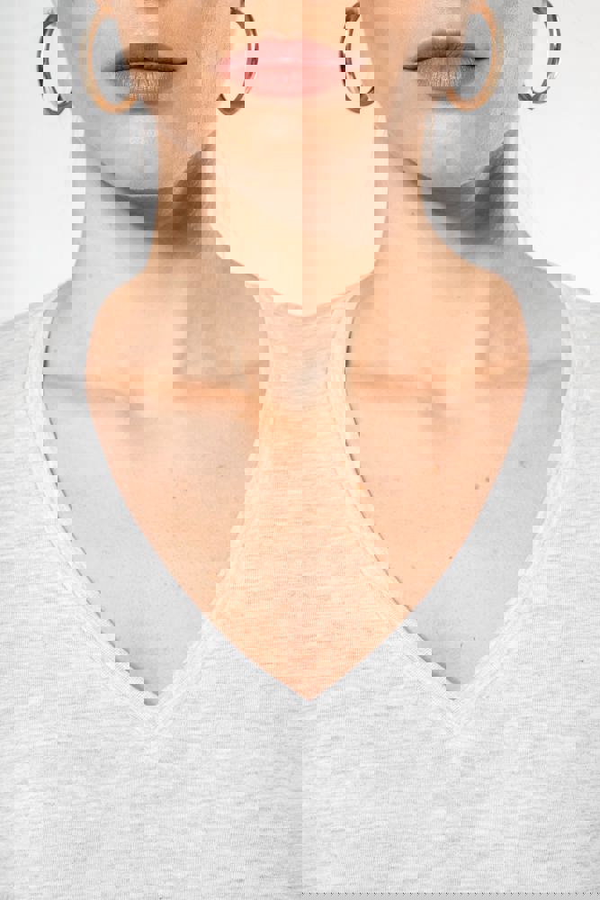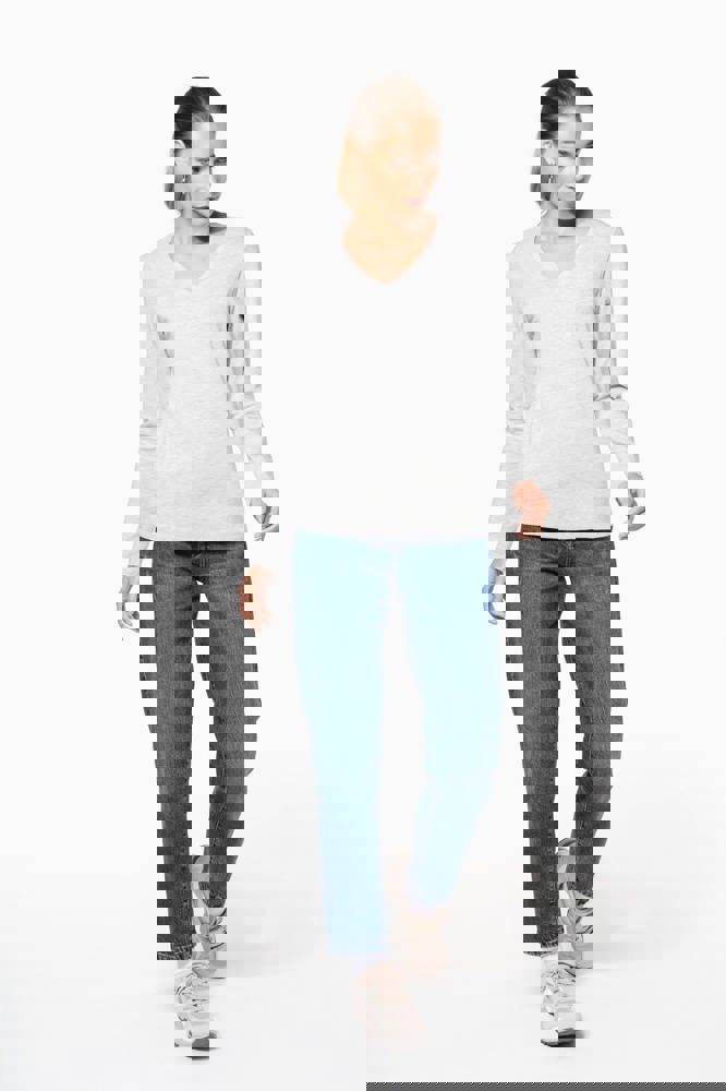 100% enzymbehandeld gekamd katoen. (Oxford Grey : 90% katoen / 10% viscose. Nektape (toon op toon voor White, Dark Grey voor Oxford Grey en Oxford Grey voor de overige kleuren). Getailleerde snit. Afwerking met dubbele stiksels.
