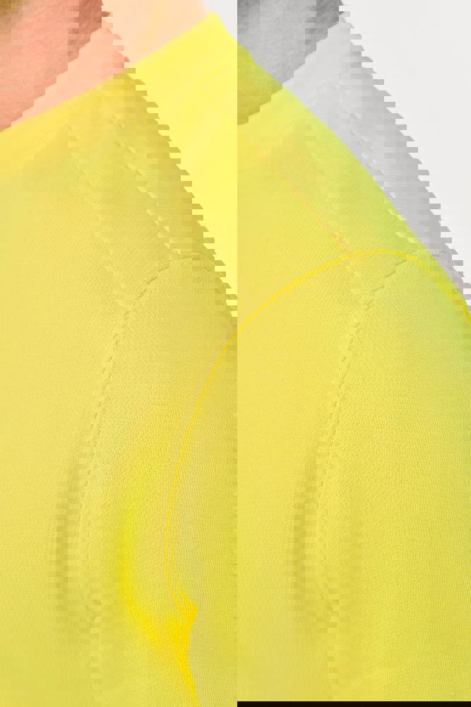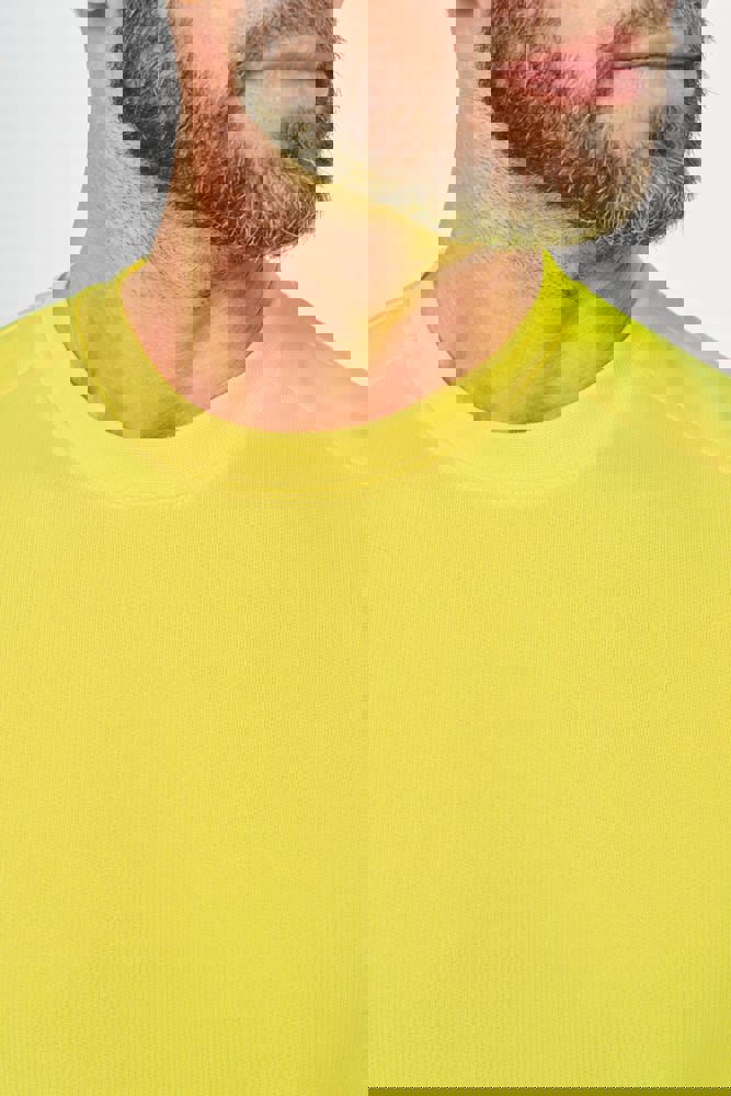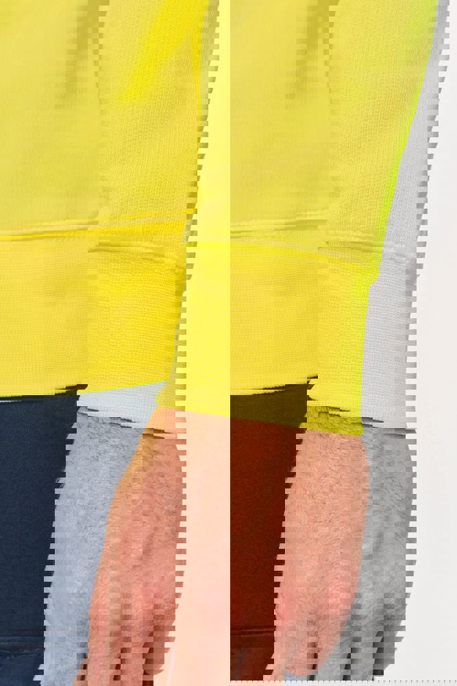 77% gerecycled polyester / 23% gekamd katoen. Geborstelde LSF 3-laags fleece (Low Shrinkage Fleece). Industrieel en/of huishoudelijk wasbaar op 60°C. Regular fit. Kraag, onderkant van het kledingstuk en mouwboorden van 1x1 rib. Nektape aan de binnenkant. Verstevigingen aan de binnenkant van de schouders in keperstof (65% polyester / 35% katoen) om vervorming bij industriële wasbeurten te voorkomen. RFID-zakje aan de onderkant van het kledingstuk onder het label. PBM Klasse II - Normen NF EN ISO 13688:2013 + NF EN ISO 13688/A1:2021 (Beschermende kleding - Algemene eisen), NF EN 17353:2020: Type A (Beschermende kleding - Uitrusting voor verbeterde zichtbaarheid in situaties met matig risico - Testmethoden en eisen), NF EN ISO 15797:2018 (Textiel - Industriële was- en afwerkingsmethoden voor het testen van werkkleding): Professioneel industrieel wassen - Wasmethode programma 8 met alleen tunnelafwerking. Geweven merketiket.