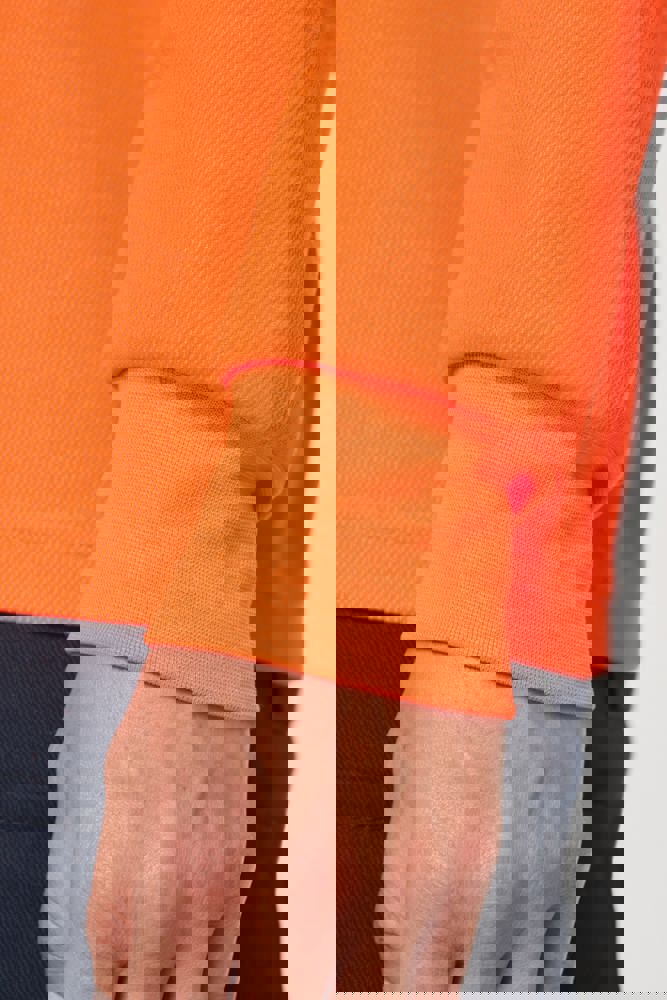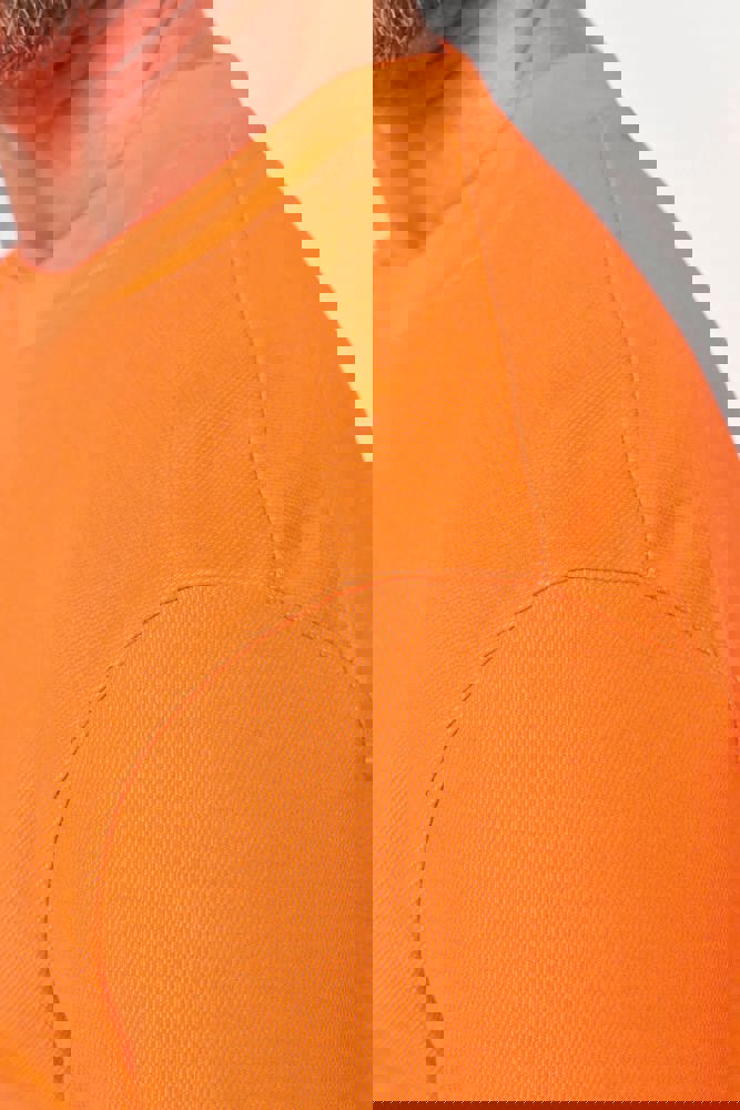 60% katoen / 40% gerecycled polyester. Gekamd katoen. Interlock piqué. Industrieel en/of huishoudelijk wasbaar op 60°C. Comfort fit. 1x1 gevoerde ribkraag. Nektape aan binnenkant kraag. Versteviging aan de binnenkant van de schouders in keperstof (65% polyester / 35% katoen) om vervorming te voorkomen bij industriële wasbeurten. RFID-zakje aan de onderkant van het kledingstuk onder het label. Dubbele stiksels bij de mouwen en onderkant van het kledingstuk. PBM Klasse II - Normen NF EN ISO 13688:2013 + NF EN ISO 13688/A1:2021 (Beschermende kleding - Algemene eisen), NF EN 17353:2020: Type A (Beschermende kleding - Uitrusting voor verbeterde zichtbaarheid in situaties met matig risico - Testmethoden en eisen), NF EN ISO 15797:2018 (Textiel - Industriële was- en afwerkingsmethoden voor het testen van werkkleding): Professioneel industrieel wassen - Wasmethode programma 8 met alleen tunnelafwerking. Geweven merketiket.