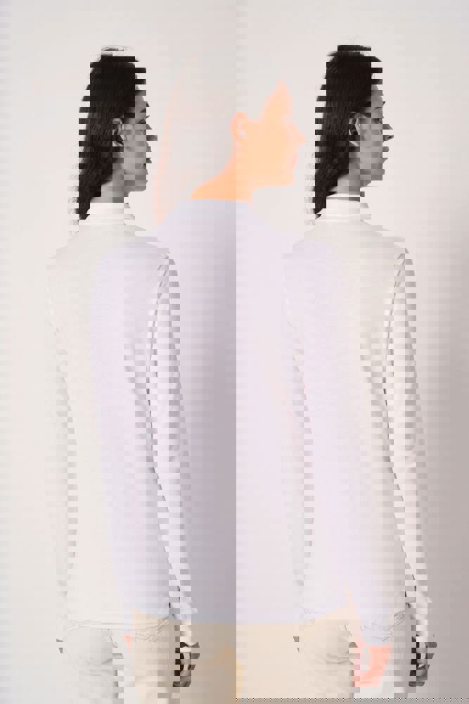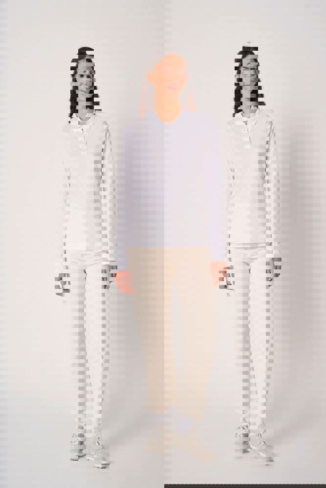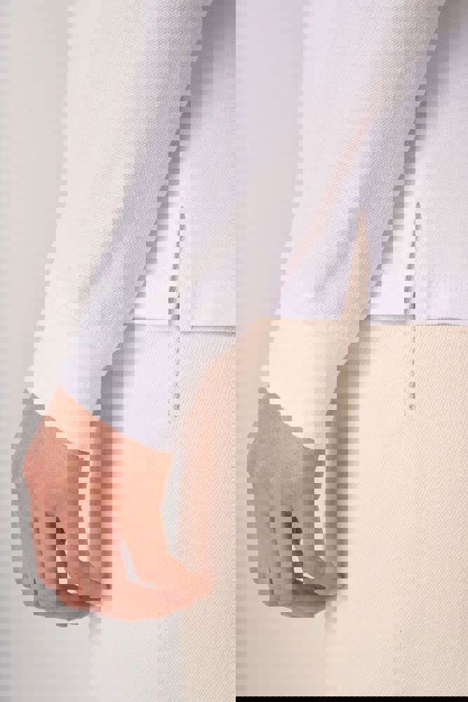 Effen kleuren: 100% katoen. Kleur Ideal Oxford Grey: 90% katoen / 10% viscose. Piqué breisel. Rechte snit. Kraag en mouwboorden in 1x1 ribboordafwerking. Sluiting met vier toon-op-toon knopen. Toon-op-toon nektape aan de binnenzijde. Zijsplitten. Zoom afgewerkt met dubbele stiksels. Afneembaar merklabel.