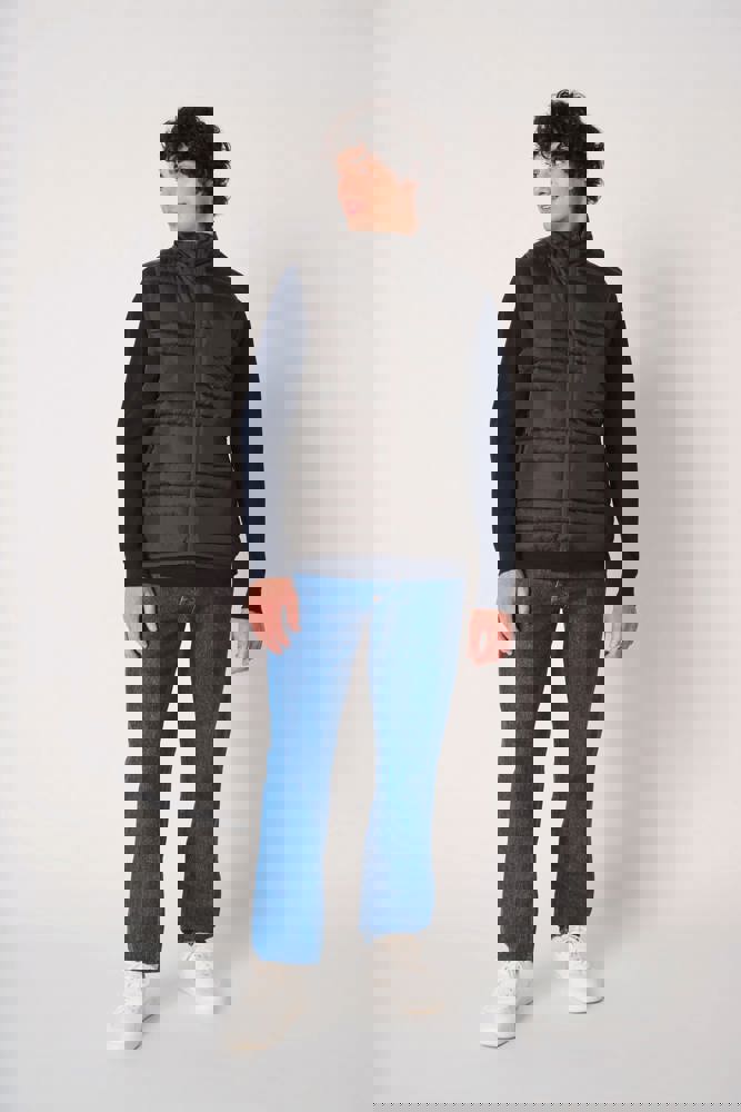 100% polyester 290T. Vulling: 100% polyester. Voering: 100% polyester 290T in toon-op-toon kleur. Rechte snit. Opstaande kraag. Twee zijzakken met voering in 290T, nylonritsen en toon-op-toon ritstrekkers. Twee binnenzakken. Ritssluiting in toon-op-toon nylon met kinbescherming en ritstrekker. Horizontale gewatteerde naden. Extra brede banen van 11 cm aan de voorkant en 14,5 cm aan de achterkant bevorderen personalisatie. Afwerking met elastische biais aan de armsgaten en onderkant in toon-op-toon kleur. Ophanglus binnenin de kraag. Opvouwbaar in zijn eigen zak. Afneembaar merklabel. Geïnjecteerde vulling: het gramgewicht kan variëren naargelang de zones van het kledingstuk. Het totaalgewicht is indicatief.
