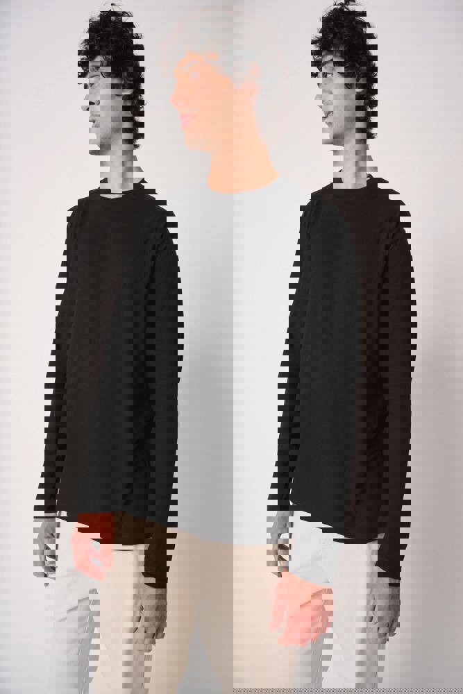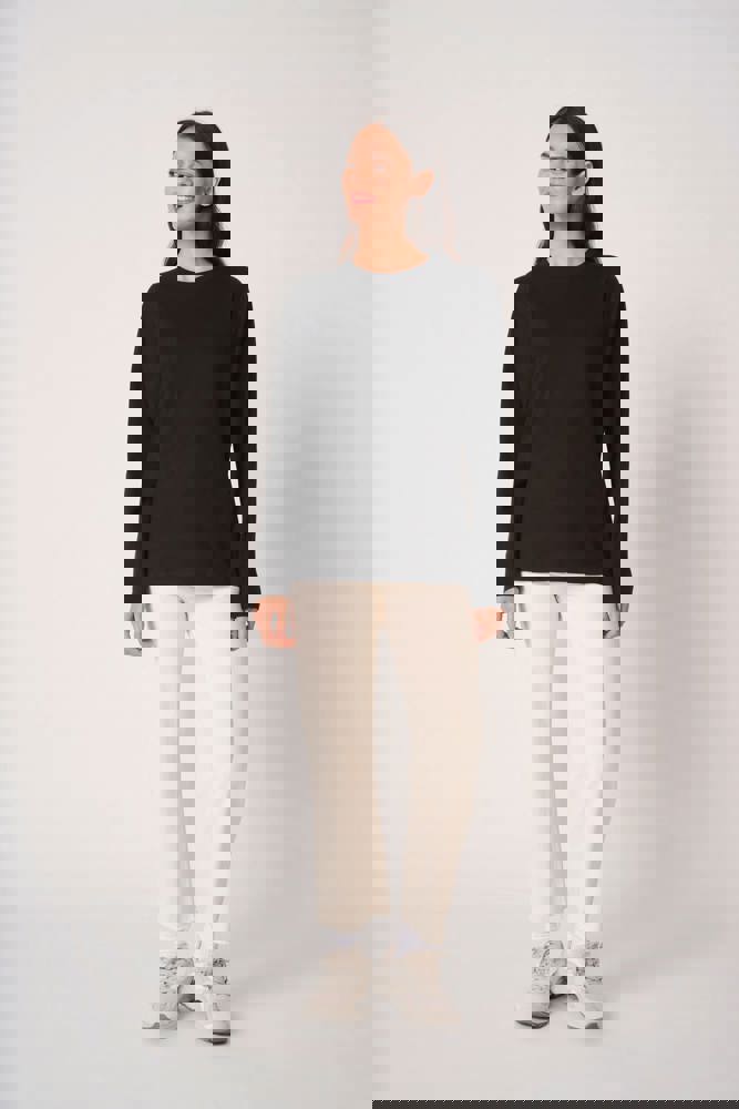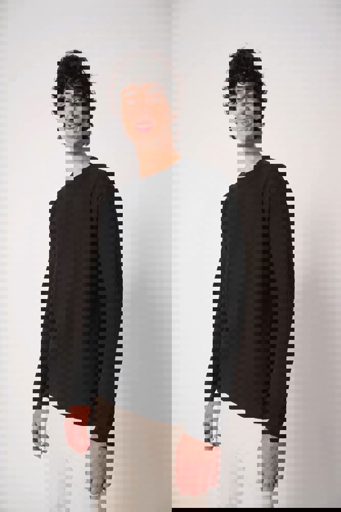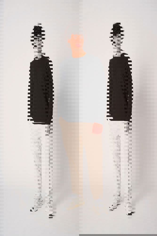 Effen kleuren: 100% katoen. Kleur Ideal Ash Heather: 99% katoen / 1% viscose. Kleur Ideal Oxford Grey: 90% katoen / 10% viscose. Tubulaire jersey. Rechte snit. Ronde hals in 1x1 ribboordafwerking met dubbele stiksels. Toon-op-toon nektape aan de binnenzijde. Mouwboorden en zoom afgewerkt met dubbele stiksels. Afneembaar merklabel.