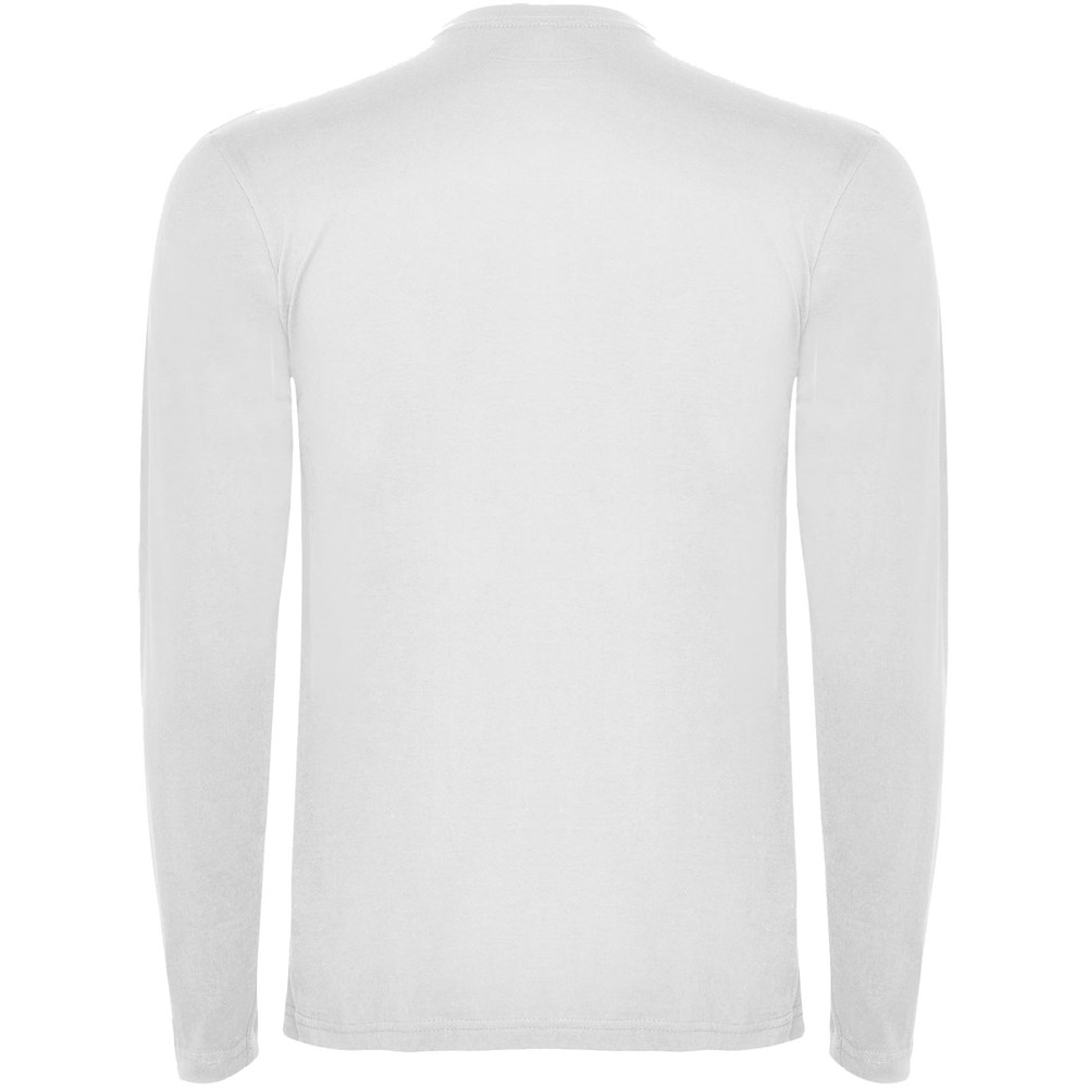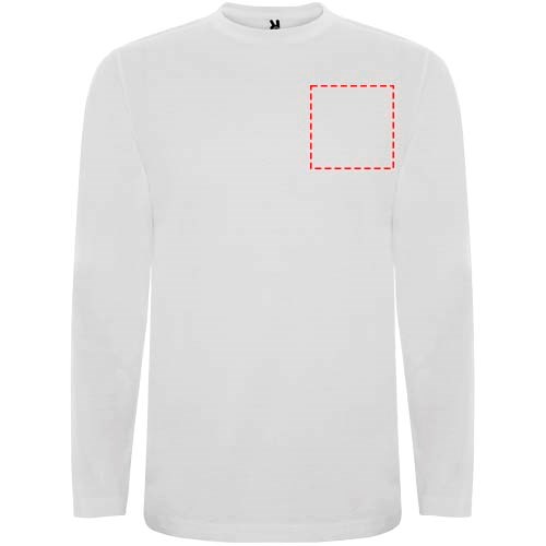 T-shirt met lange mouwen van buisvormige stof en 4-laags ronde hals. Versterkte bedekte naden in kraag en schouders. Geen manchetten. Verwijderbaar etiket. Buisvormig ontwerp in volwassen maten en zijnaden in kindermaten. Het model is 185 cm en draagt maat L.