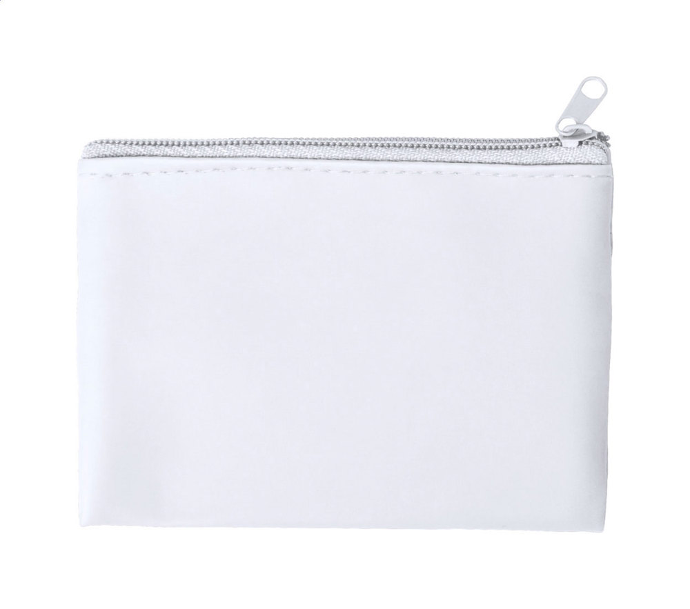 Microfiber portemonnee met rits en sleutelhanger.