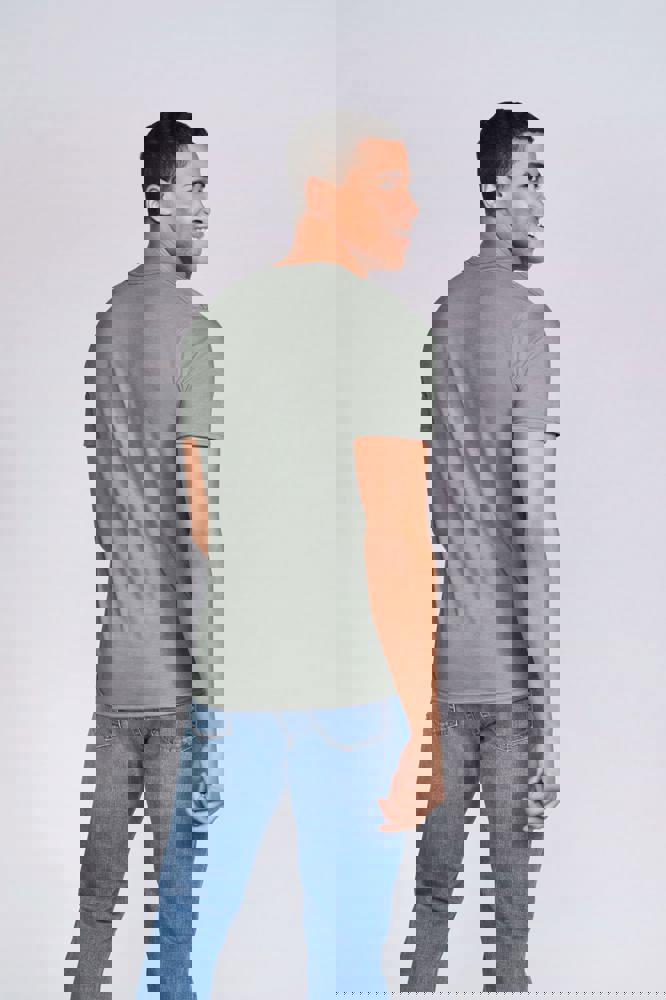 100% voorgekrompen ringgesponnen katoen "Softstyle" (Sport Grey / Antique kleuren: 90% voorgekrompen ringgesponnen katoen / 10% polyester, Heathers: 35% voorgekrompen ringgesponnen katoen / 65% polyester). Jersey. Nektape van shouder tot schouder. Dubbel stiksel op de mouwen en onderaan. Tubulaire snit. De stof is een kwartslag gedraaid om de middenvouw weg te werken.