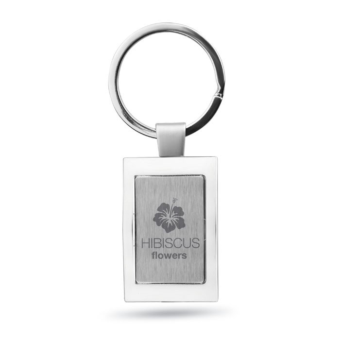 Luxe rechthoekige metalen sleutelhanger. Geleverd in geschenkverpakking.