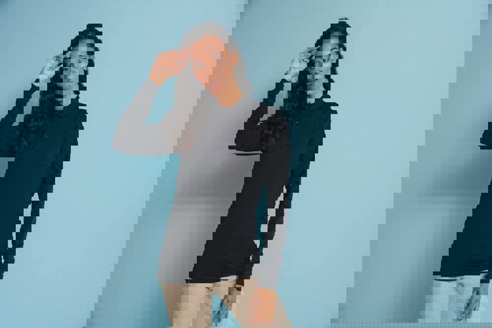 100% Coolplus® polyester. Micropiqué. Klassieke snit. Knooplijst met twee ton-sur-ton knopen. Kraag en mouwuiteinden in rib. Zijsplitten.
