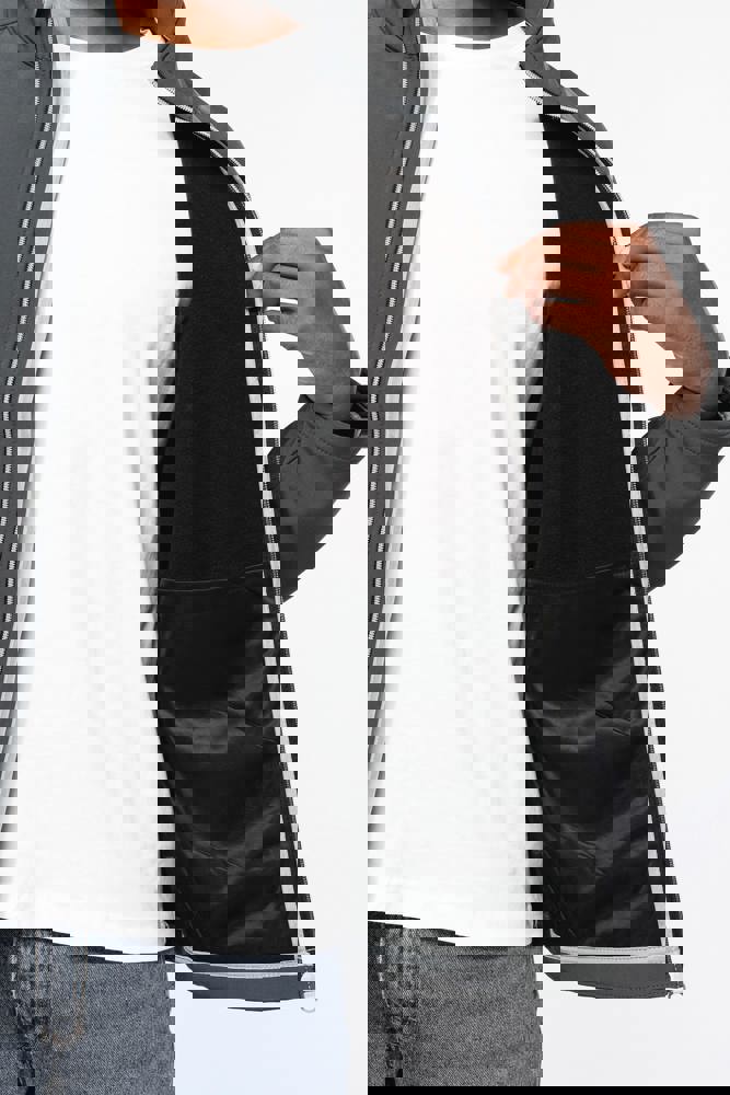 Buitenkant: 95% polyester / 5% elasthan. Binnenkant: 100% microfleece polyester. Waterafstotende stof. Rechte snit. 2 ritszakken aan de buitenkant. Contrasterende ritssluitingen. Verlengd achterpand. Stiksels op schouders en aan de zijkant.