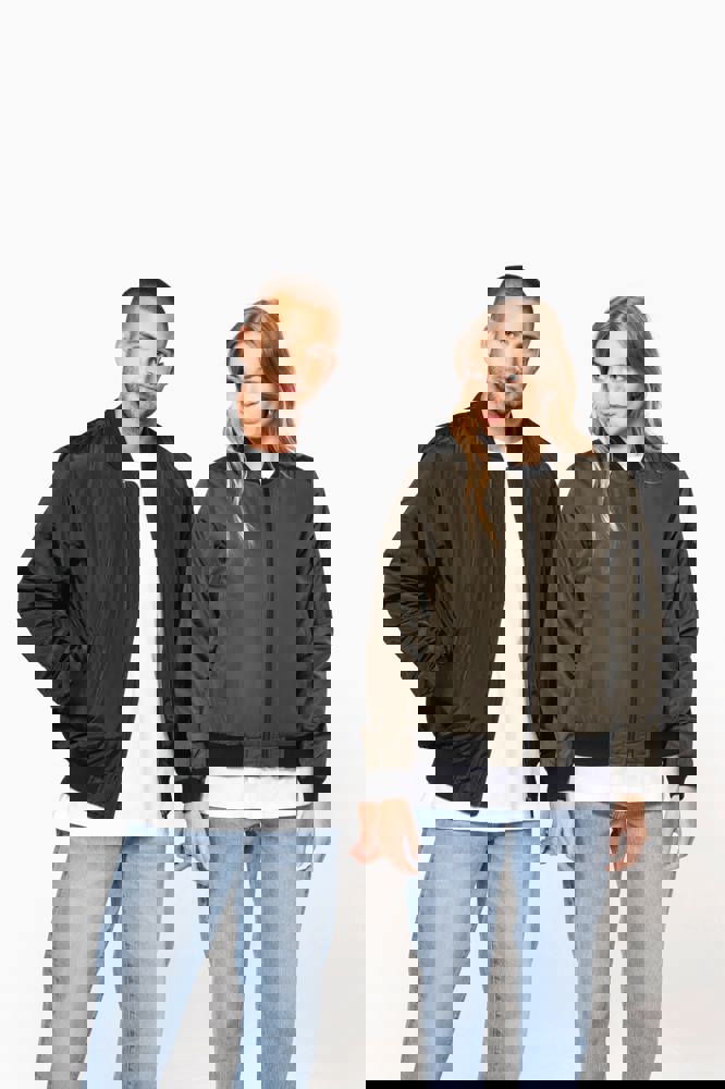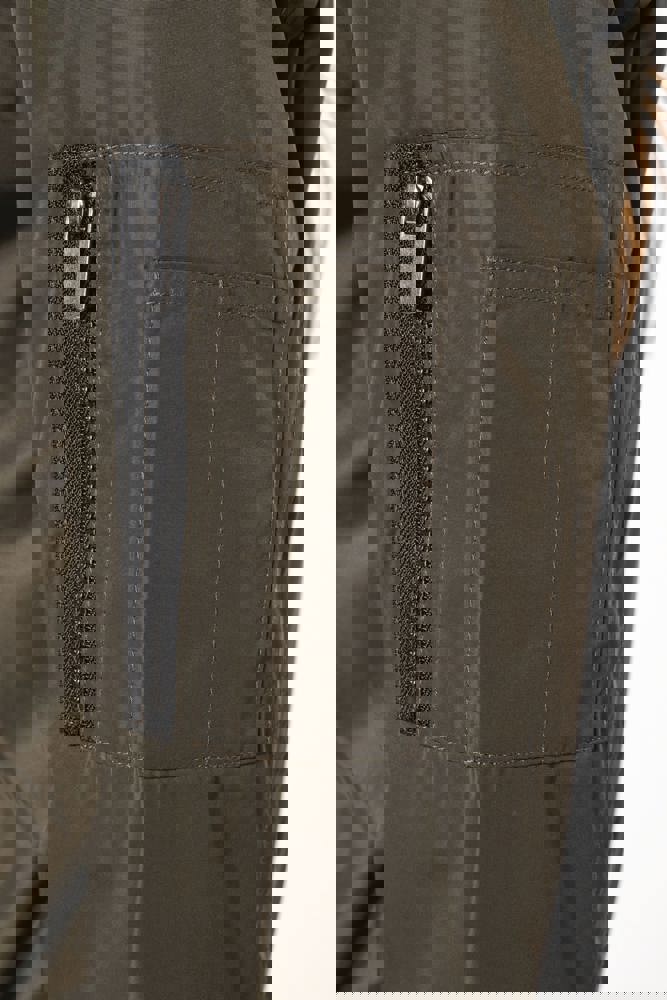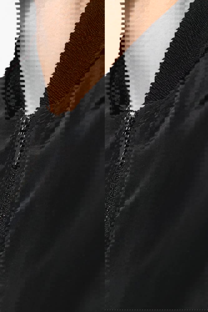 100% polyester. Gewatteerde voering van 100% polyester. Ritssluiting. 2 omzoomde zakken aan de voorkant. Opzetzak met rits en penzak op de linkermouw. Omzoomde binnenzak. 2x2 ribboord aan halsopening, mouwuiteinden en onderkant. 1 rits aan de linkerkant en 1 drukkersrits.