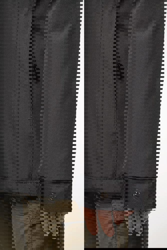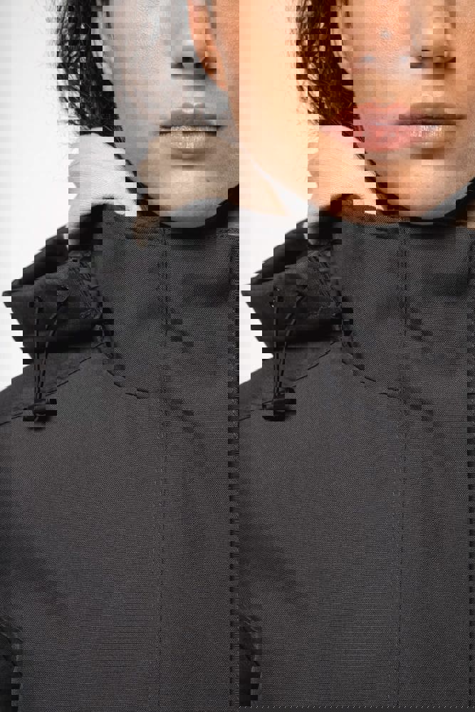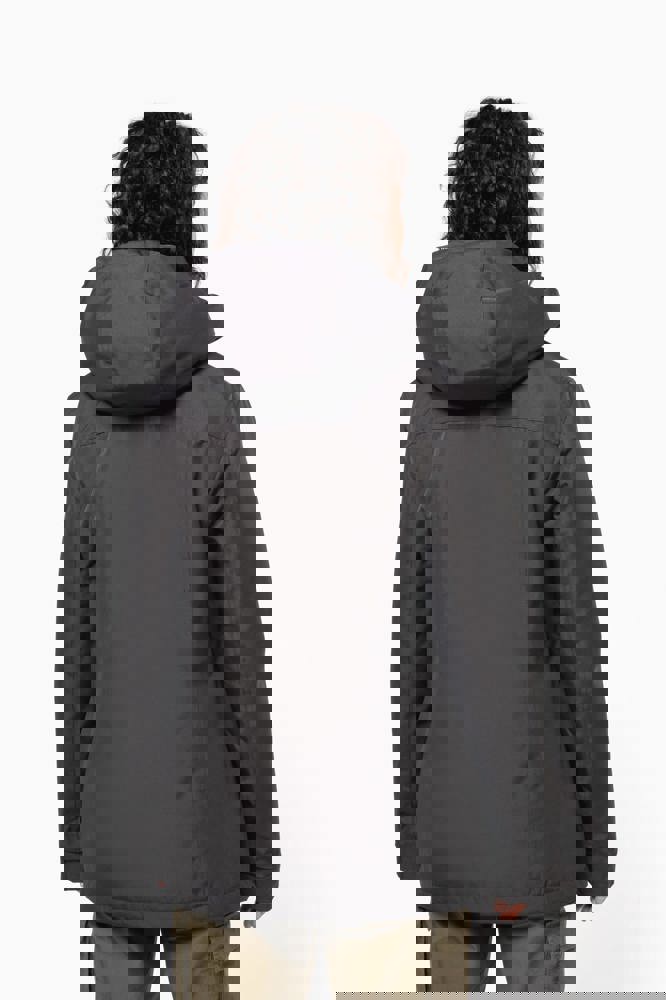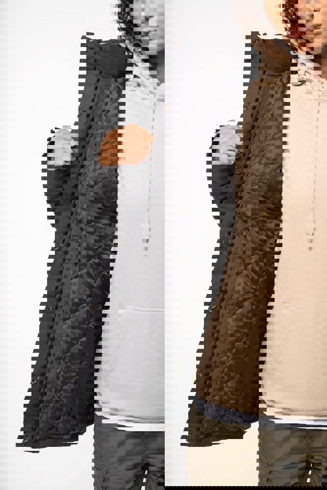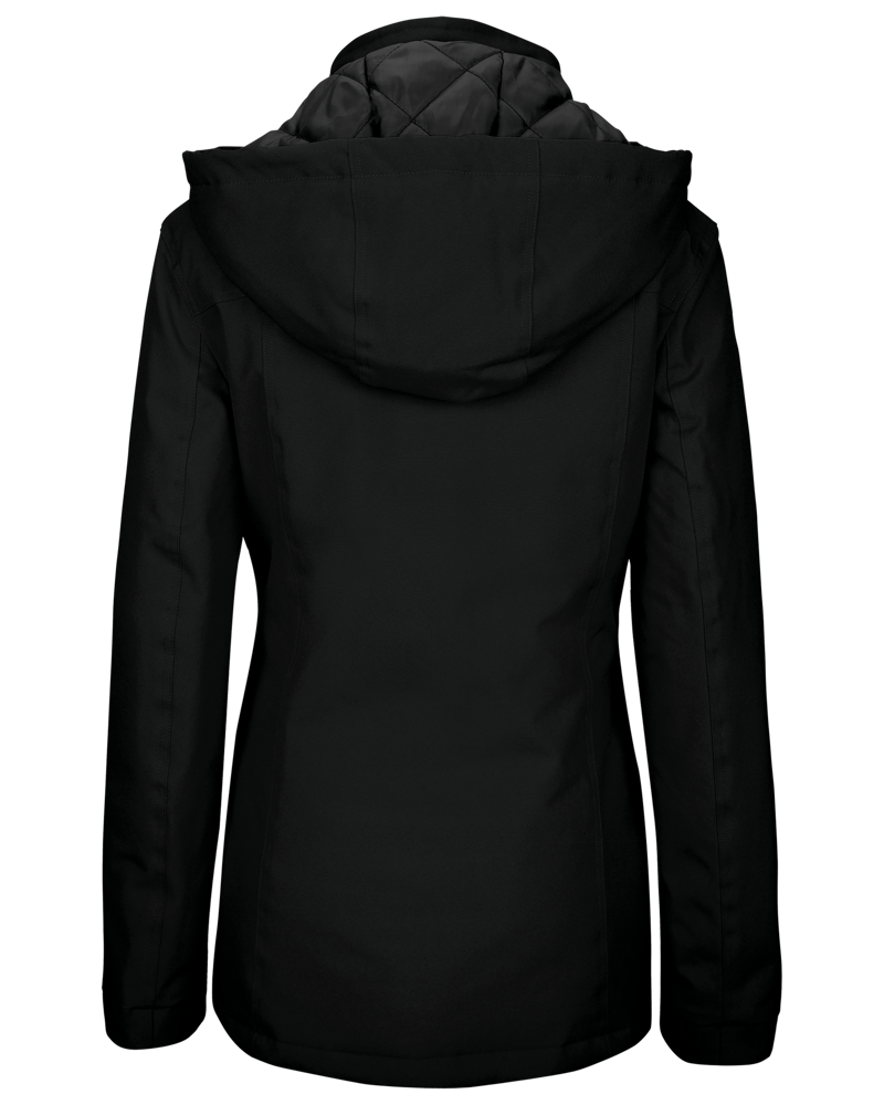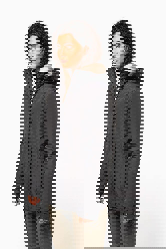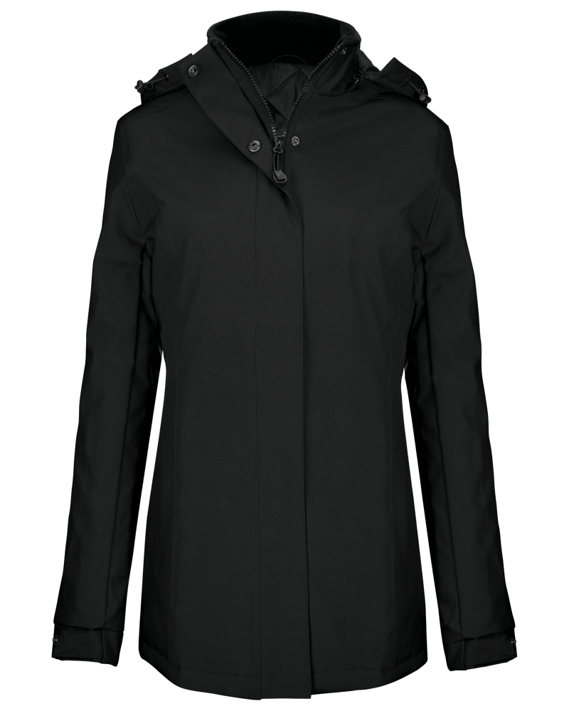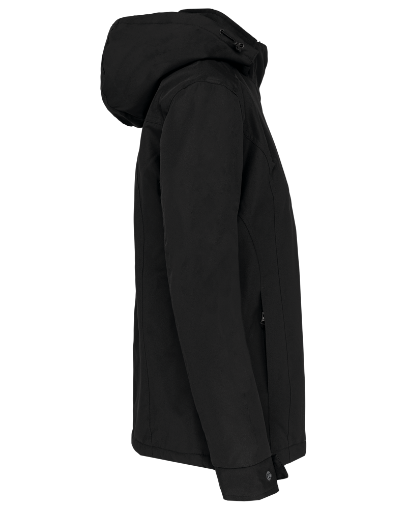 Buitenkant: 100% oxford polyester. Binnenkant: gewatteerde polyester. Ritssluiting met overslag en onzichtbare drukknopen. 2 ritszakken aan de buitenkant. 1 binnenzak. Afneembare capuchon. Kraag met fleecevoering. Drukkersrits.