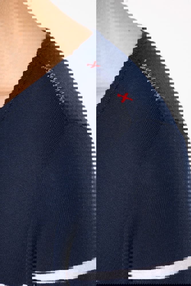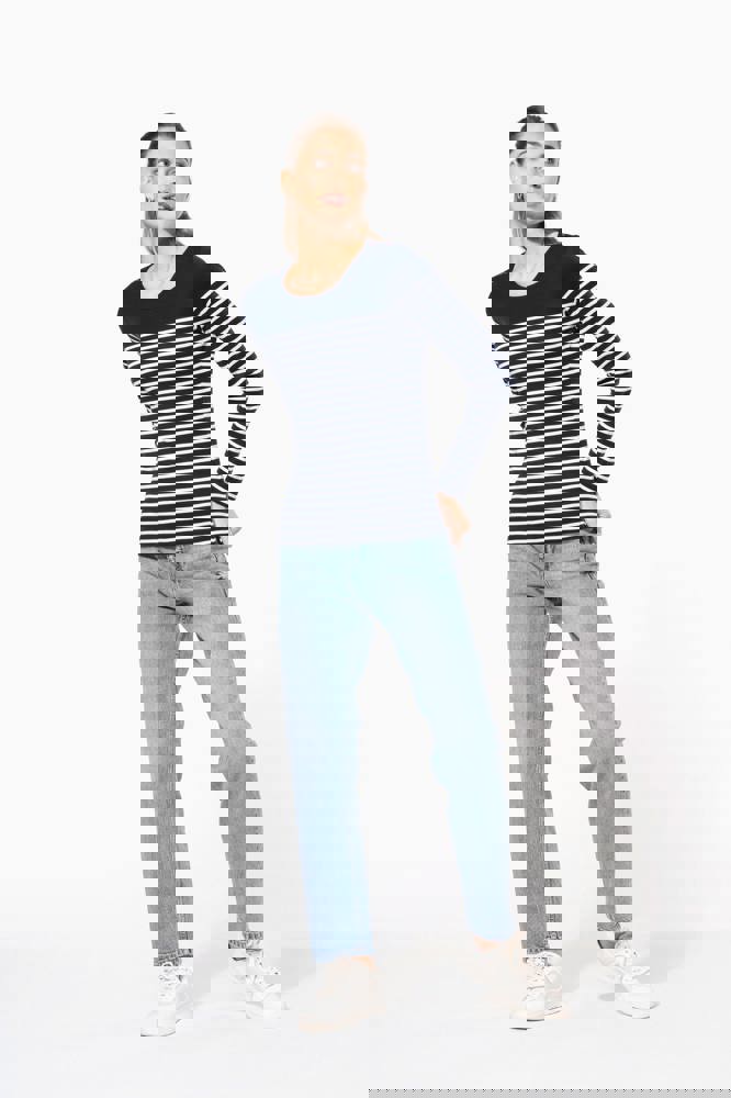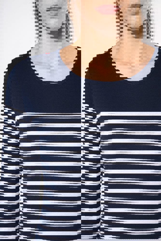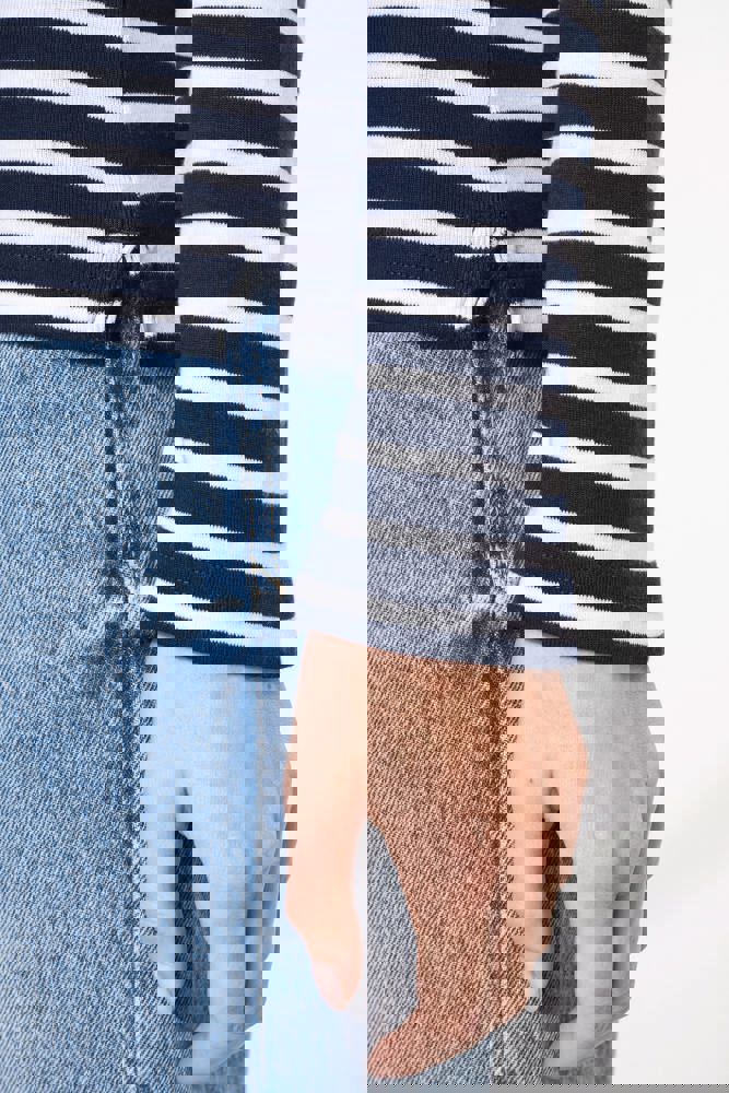 100% katoen 1x1 rib. Ronde hals Fantasie-design op de schouder. Zijsplitten.