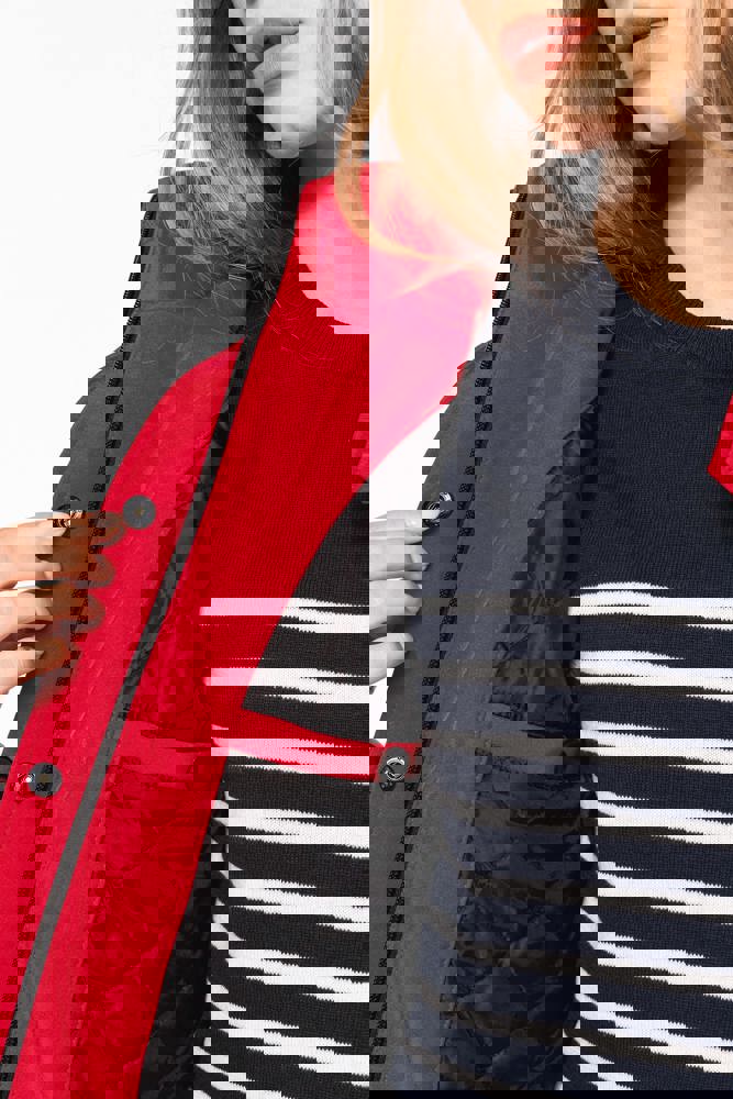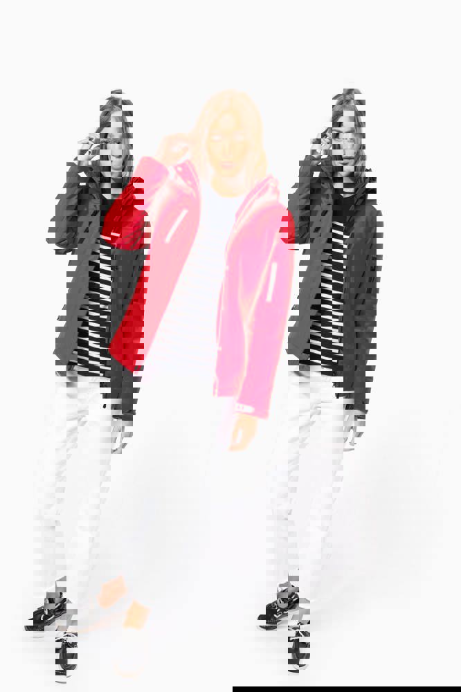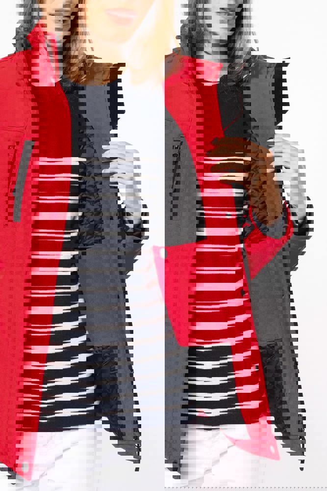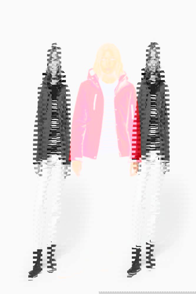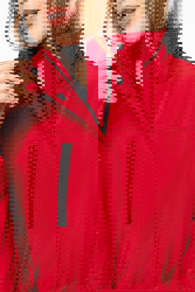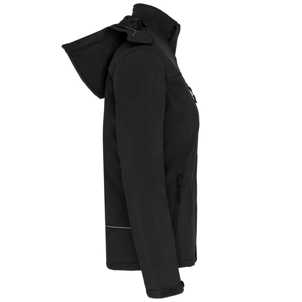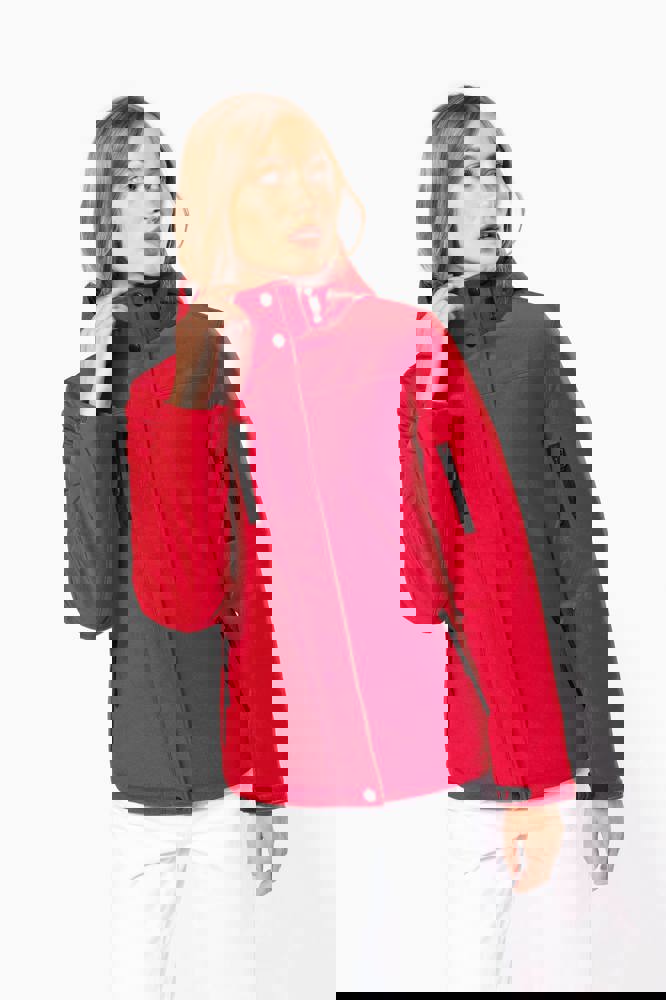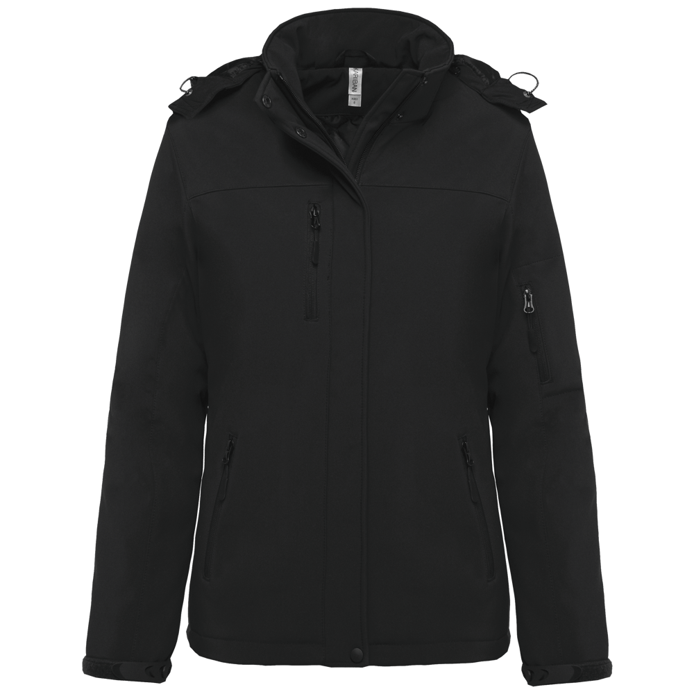 95% polyester / 5% elasthan. 3-laagse ademende stof 3000 g/m²/24 u en waterdicht 8000 mm. Buitenkant: 95% polyester / 5% elasthan. Tussenlaag: ademend membraan. Binnenlaag: microfleece. Gewatteerde voering van 100% polyester. Voorkant: 4 ritszakken (2 aan de zijkant, 1 op de mouw, 1 rechts op de borst). 2 binnenzakken met drukknoop. Afneembare capuchon met 3 gevoerde en gewatteerde panelen, regelbaar met stoppers. Met klittenband regelbare mouwuiteinden. 1 rits aan de linkerkant en 1 drukkersrits.