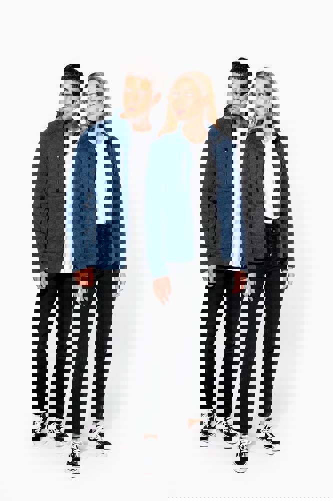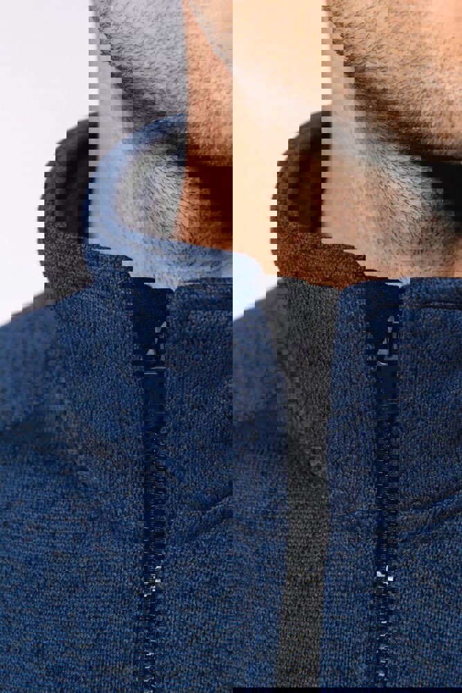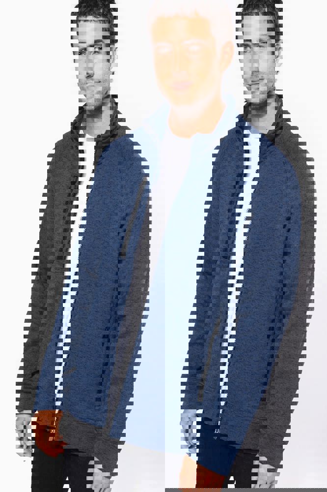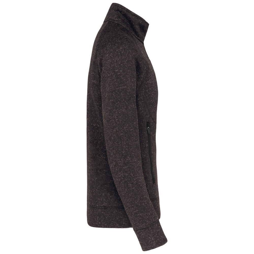 Geborstelde binnentricot 100% polyester. Raglanmouwen. Ritssluiting. 2 contrasterende ritszakken aan de voorkant en 1 contrasterende borstzak met rits. Overlocksteek op de inzetstukken. Heel comfortabele snit en stof.