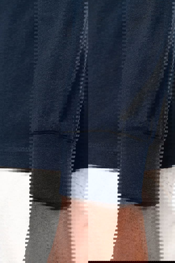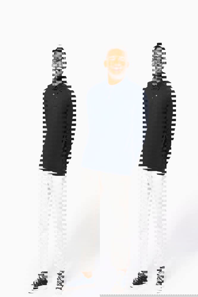 100% katoen (Heather Grey: 65% katoen / 35% polyester - Oxford Grey : 90% katoen / 10% viscose). Katoenen, gekamde jersey. Hemdskraag. Knooplijst met 3 metalen knopen. Inzetstuk op de schouder. Mouwuiteinden in ribboord. Dubbel stiksel aan de onderkant.