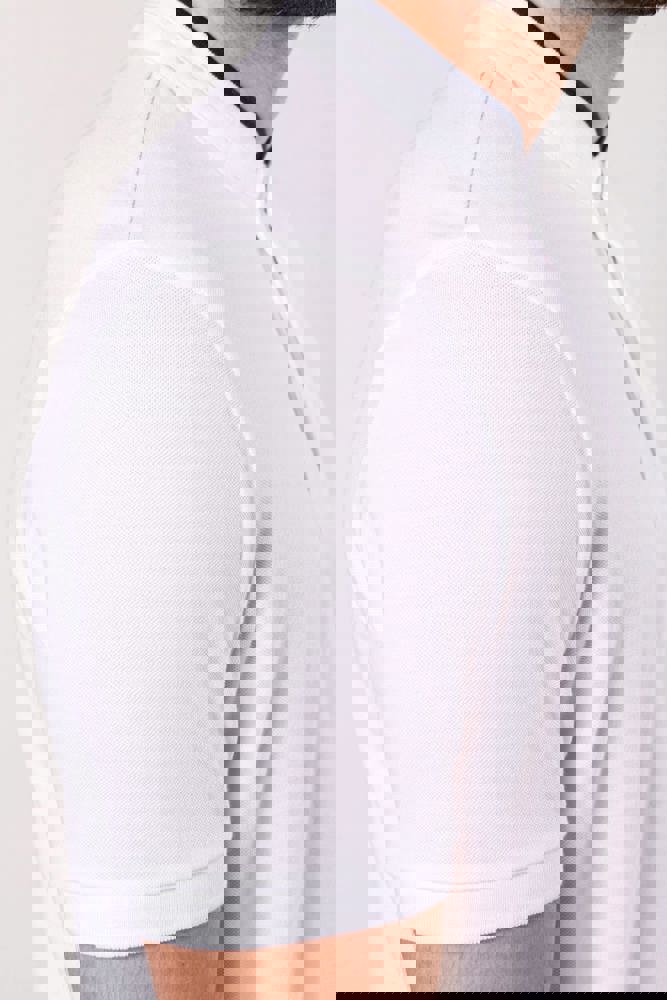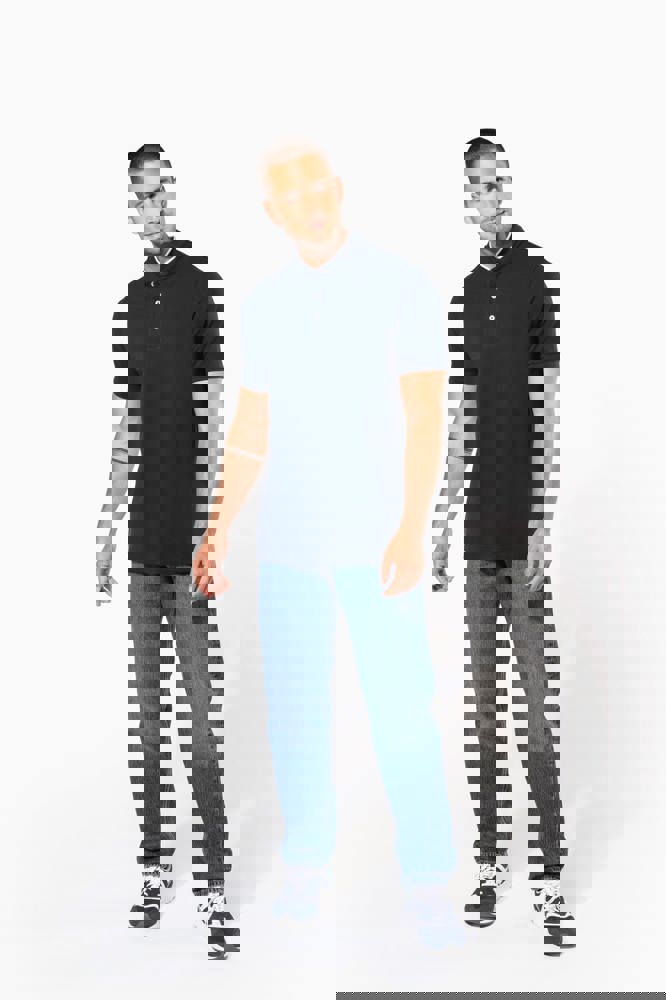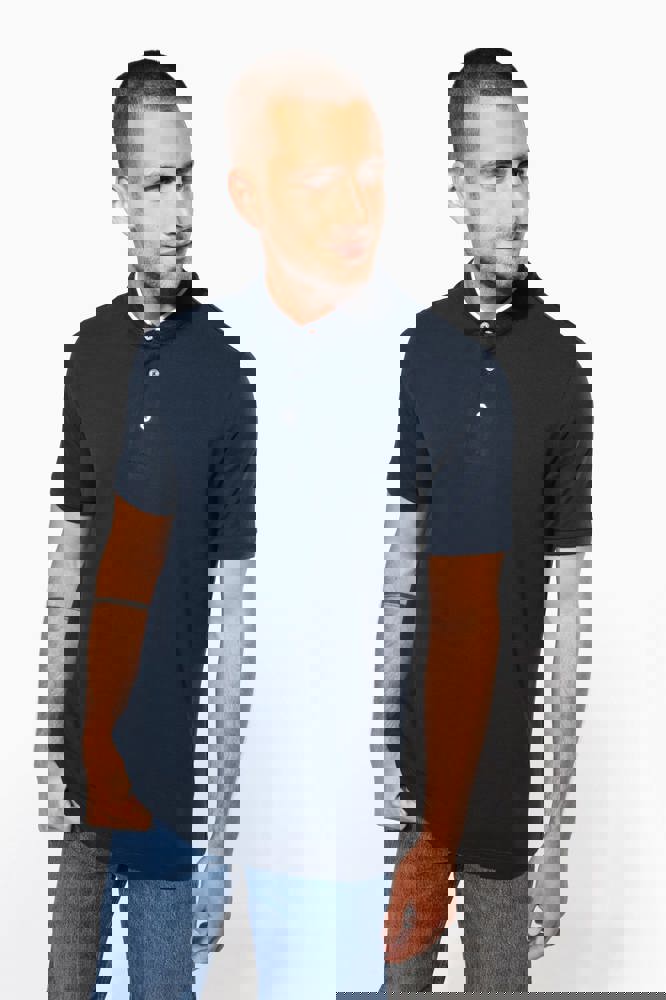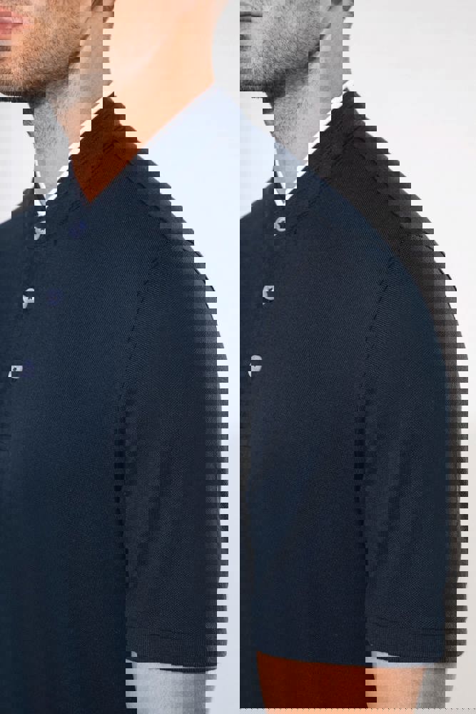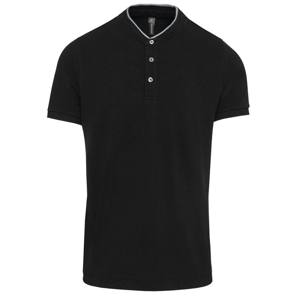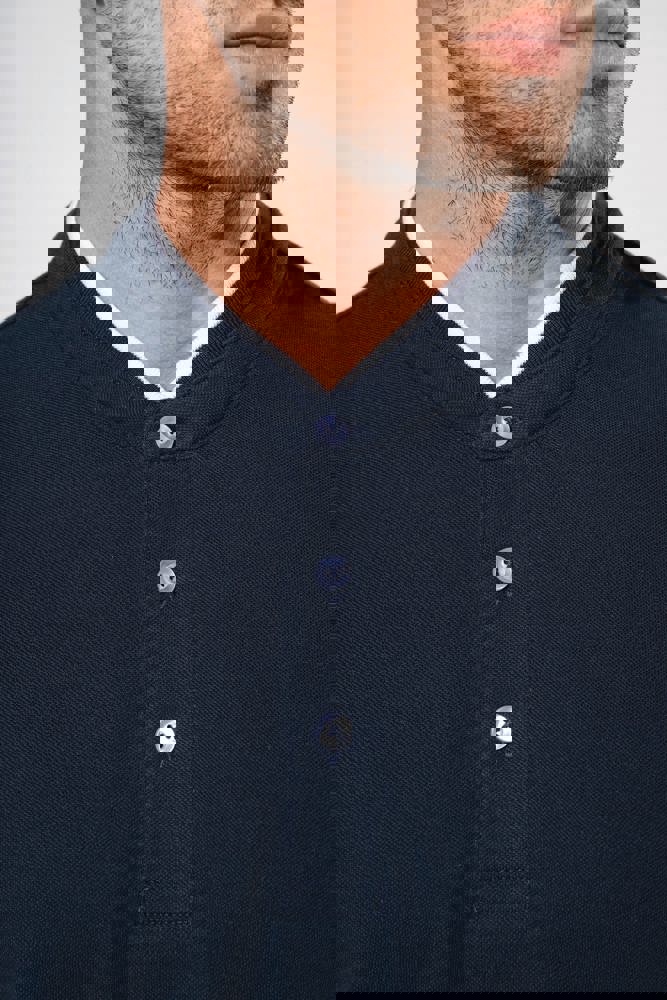 100% katoen. (90% katoen / 10% viscose voor chiné kleur). Katoenen, gekamd piquétricot. Wasbaar op 60 °C (40 °C voor chiné kleur) Kraag in maostijl in ribboord met contrasterende bies. Knooplijst met 3 contrasterende knopen. Ribboord aan mouwuiteinden. Dubbel stiksel aan de onderkant.