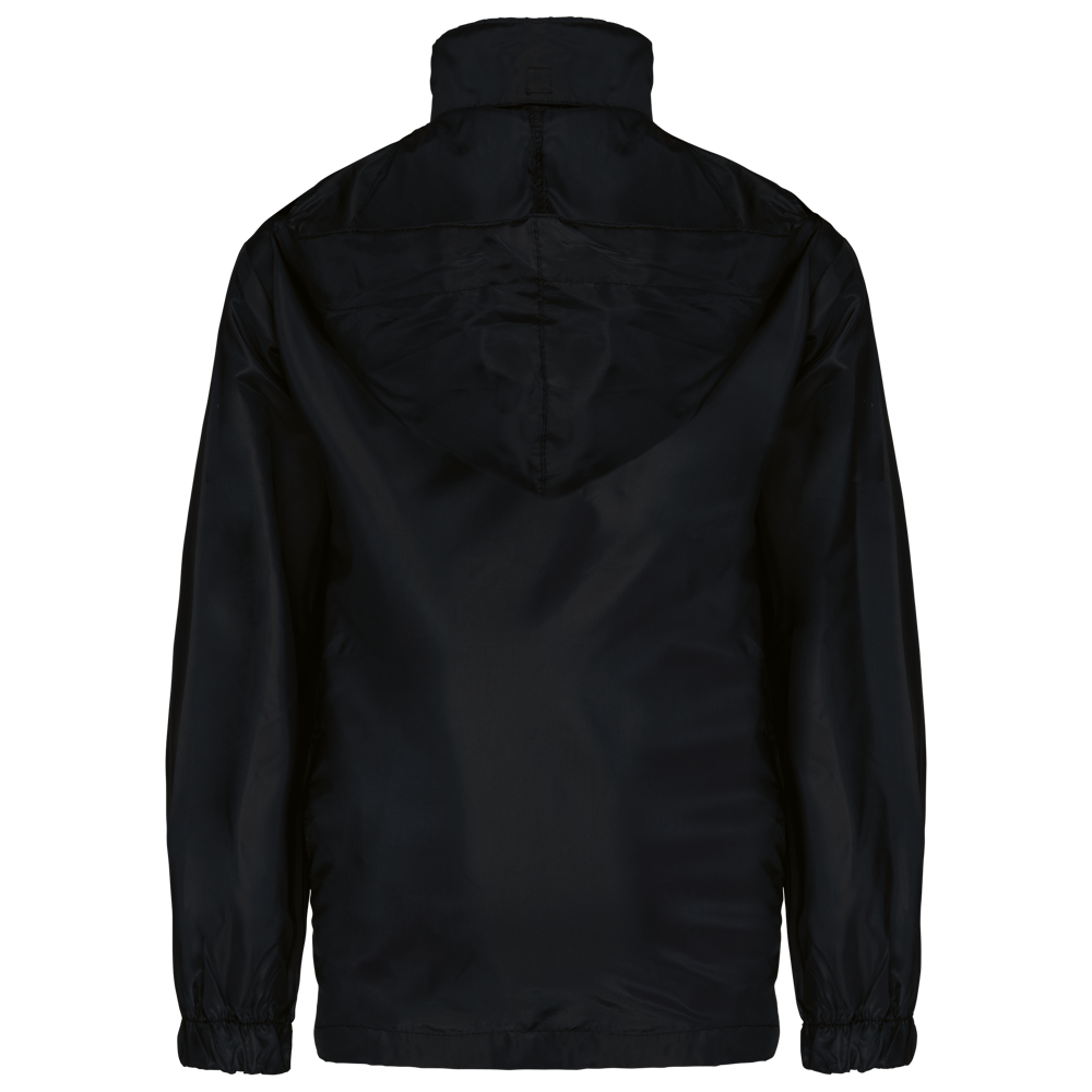 100% polyester. Toon op toon ritssluiting. Capuchon in de kraag met klittenbandsluiting. 2 voorzakken met ritssluiting. Elastische mouwuiteinden. Opvouwbaar volgens het K-Way® systeem.