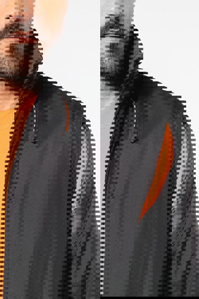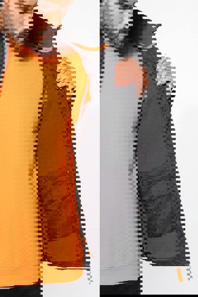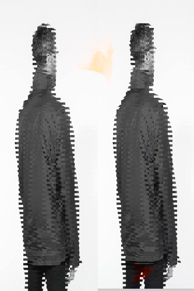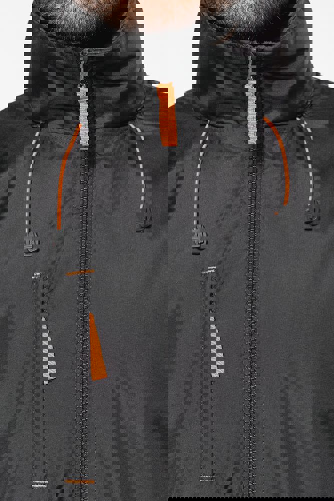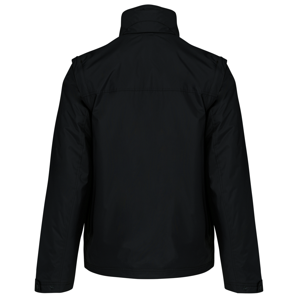 100% polyester met PVC inductie. 100% polyester fleecevoering. De voering van de mouwen is in 100% polyester + 100% polyesterwatten. Zachte stof. Volledige ritssluiting. 3 zakken met ritssluiting. Afritsbare mouwen. Verstelbare mouwuiteinden. Contrasterende ritstrekker, nektape en stopstiksels. 3 binnenzakken (2 met rits en 1 gsmzakje). Aanrijgkoord aan de binnenkant de jas. Capuchon verwerkt in de kraag. Drukkersrits.