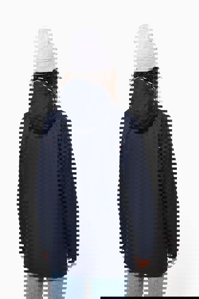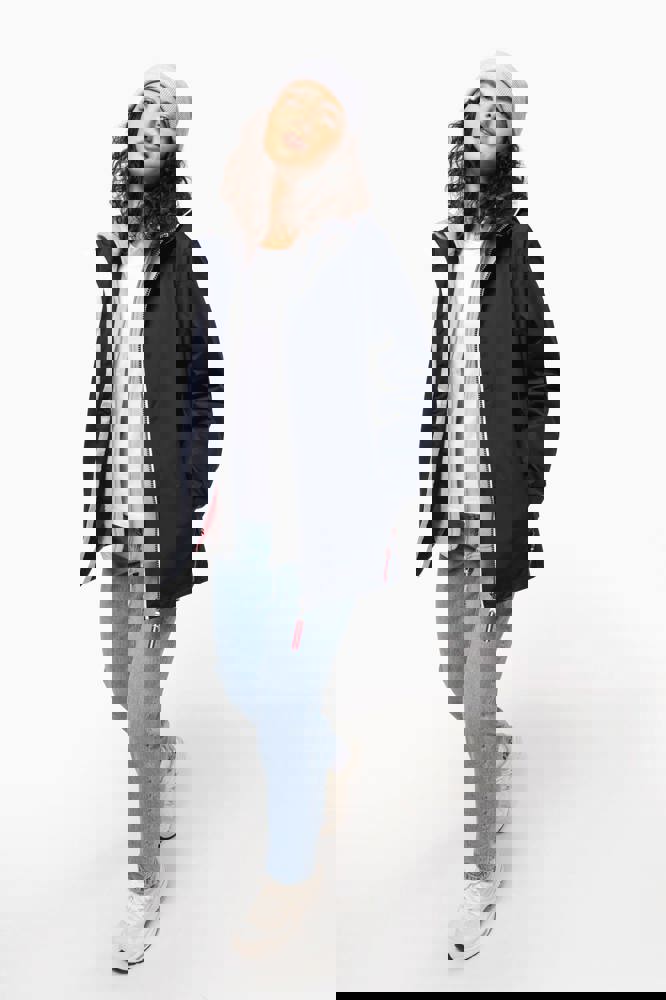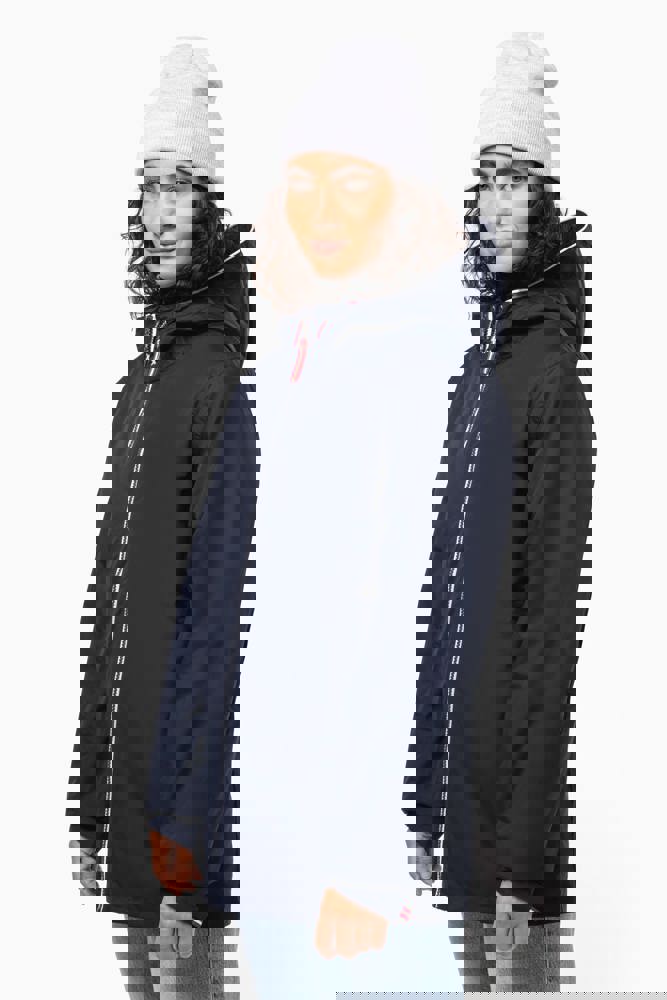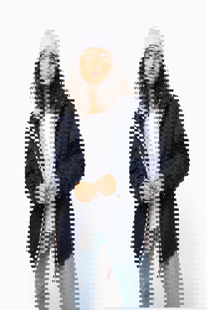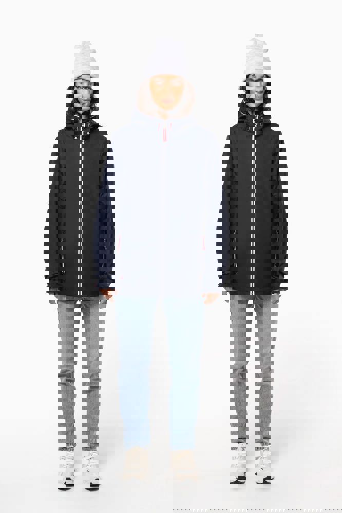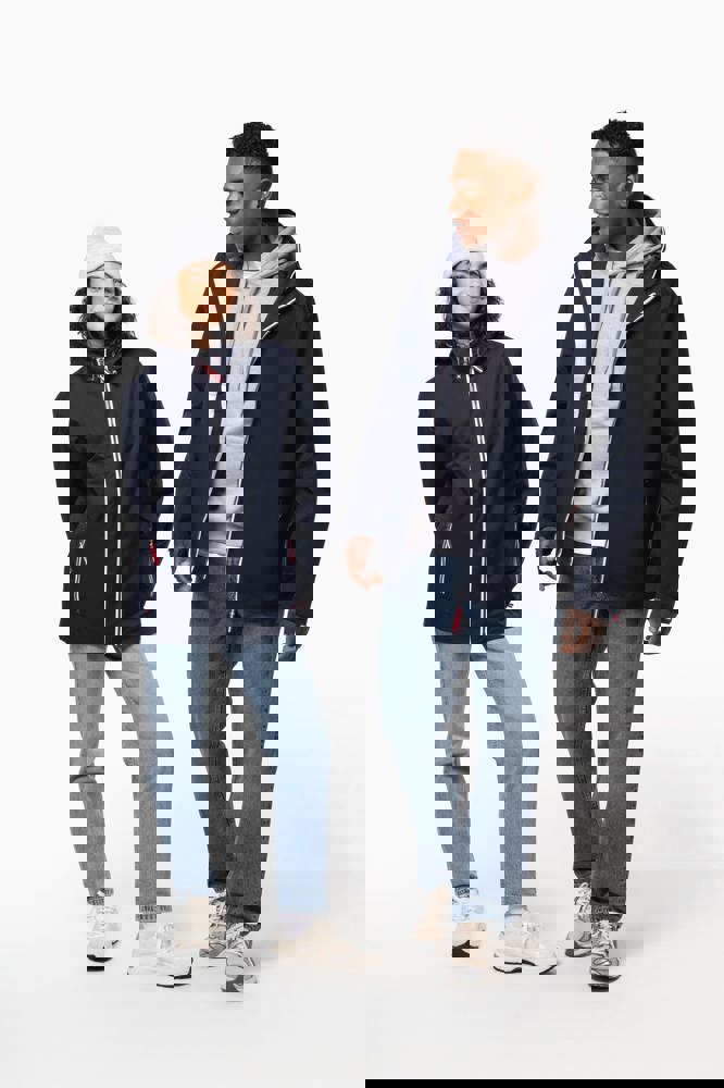 100% polyamide. Ademend 5000g/m2/24h. Waterdicht tot 3000mm. Waterdichte getapete naden. Ritssluiting. 2 voorzakken met rits. 1 binnenzak. Polyester voering in contrastkleur. Verstelbare capuchon met mesh voering. Drukkersrits onderaan en ter hoogte van de borst.
