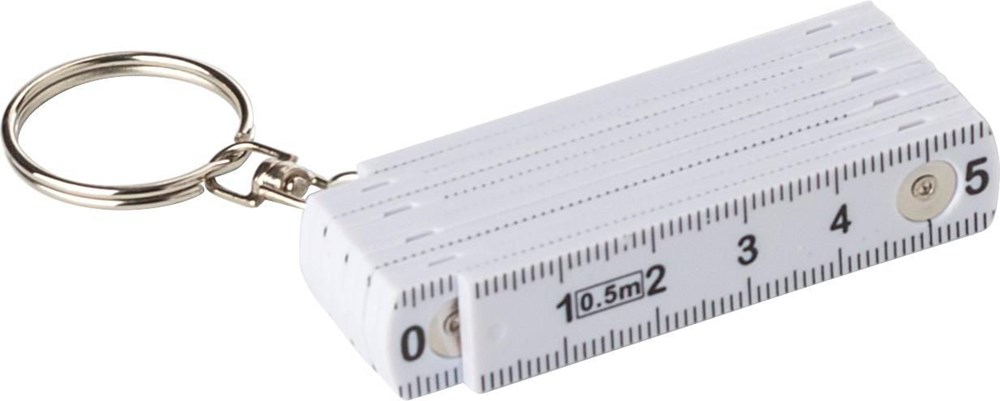 Kunststof duimstok met een totale lengte van een halve meter. Inclusief sleutelring.