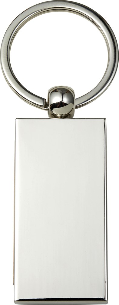 Metalen en houten sleutelhanger met stalen sleutelring. Individueel verpakt in polybag.