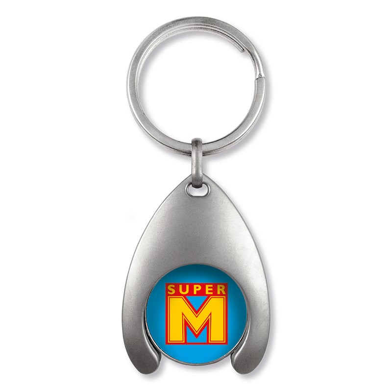 Solide metalen munthouder met aan een zijde een superscherpe gelamineerde sticker. Qua muntje heb je de keuze uit een munt voor € 1- of € 0,50. Het drukformaat voor beide versies is Ø 22 mm.