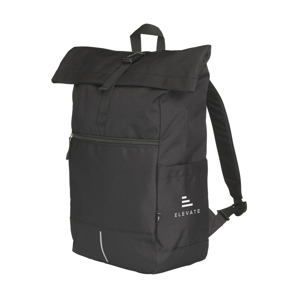 Praktische, stevige en waterafstotende urban ‘roll-top’ rugzak van RPET Polyester. De rugzak...meer