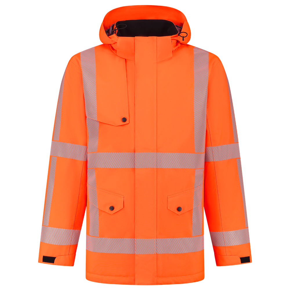 Dankzij de gesegmenteerde reflective striping verhogen we het draagcomfort. Daarnaast is het bevorderlijk voor de levensduur van het artikel, omdat deze striping niet snel scheurt. De capuchon is bevestigd met drukkers, waardoor deze direct loslaat als deze klem komt te zitten. De 2 inkepingen aan de zijkant van de capuchon zorgen voor een beter zicht voor de drager. De zakken op het voorpand bieden voldoende opbergruimte. De zak op de rechterborst is verdekt. De YKK-rits in de jas is verdekt en de manchetten zijn verstelbaar met klittenband. De parka heeft een verlengd rugpand met een printerrits.