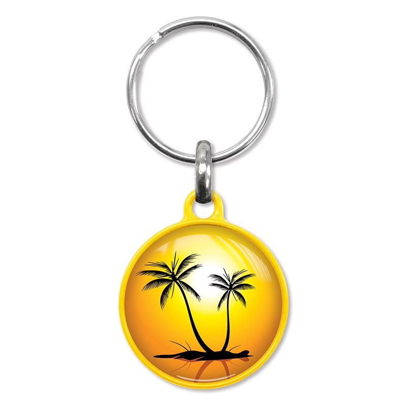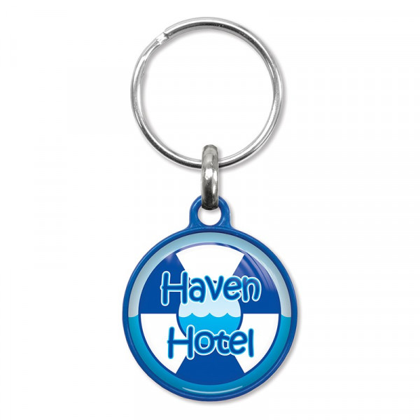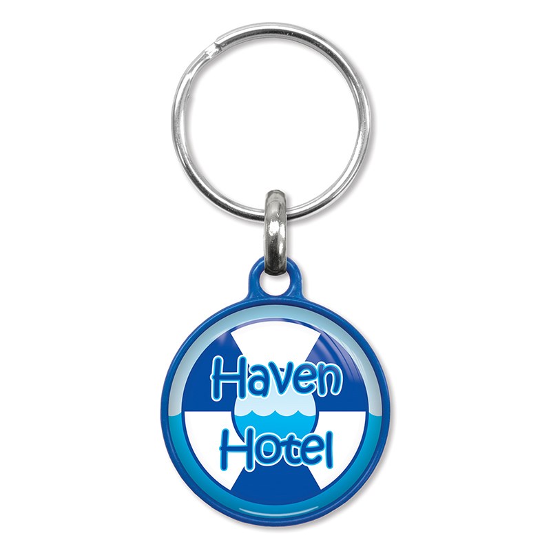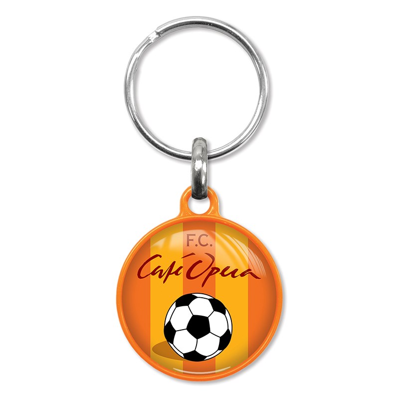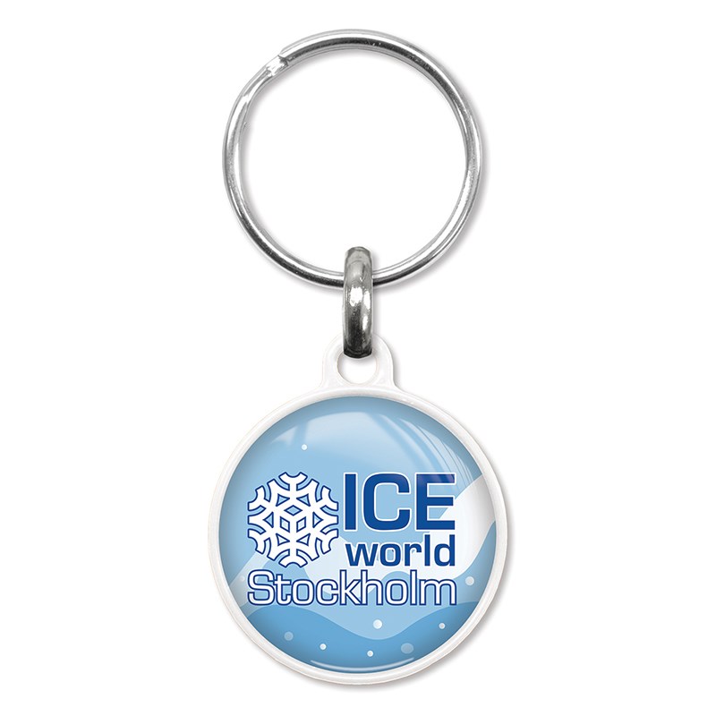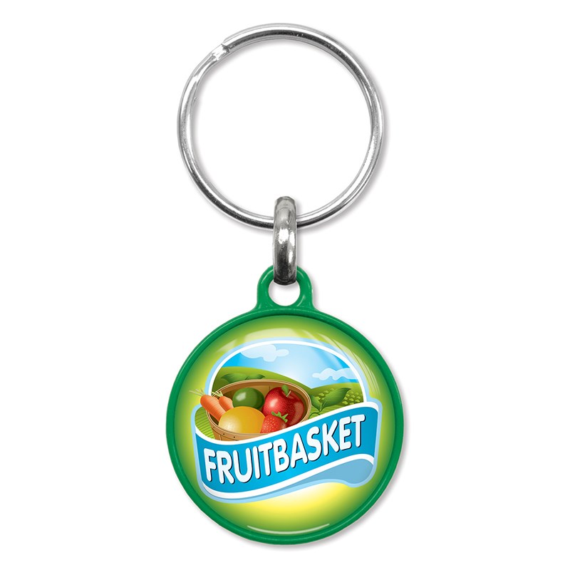 Degelijke ronde sleutelhanger gemaakt van gekleurd kunststof. Deze hanger wordt aan een zijde voorzien van een fraaie dominglabel met het formaat diameter 28 mm. De keuze uit kleuren voor de hanger bestaat uit: wit, oranje, geel, groen, blauw en zwart.