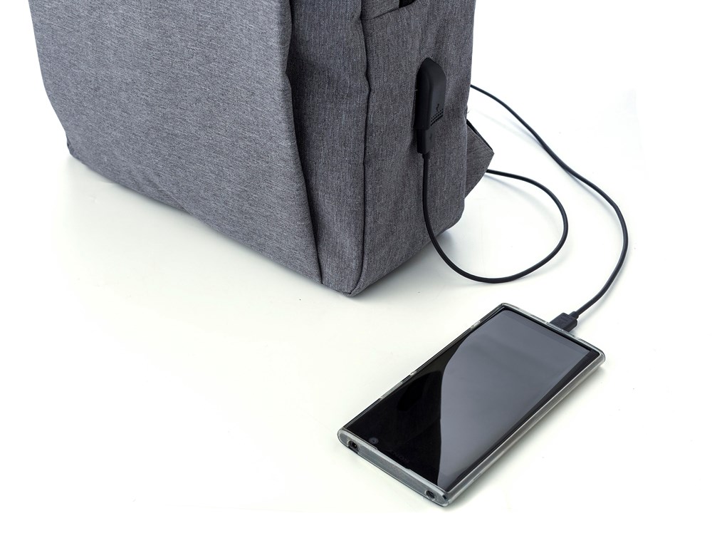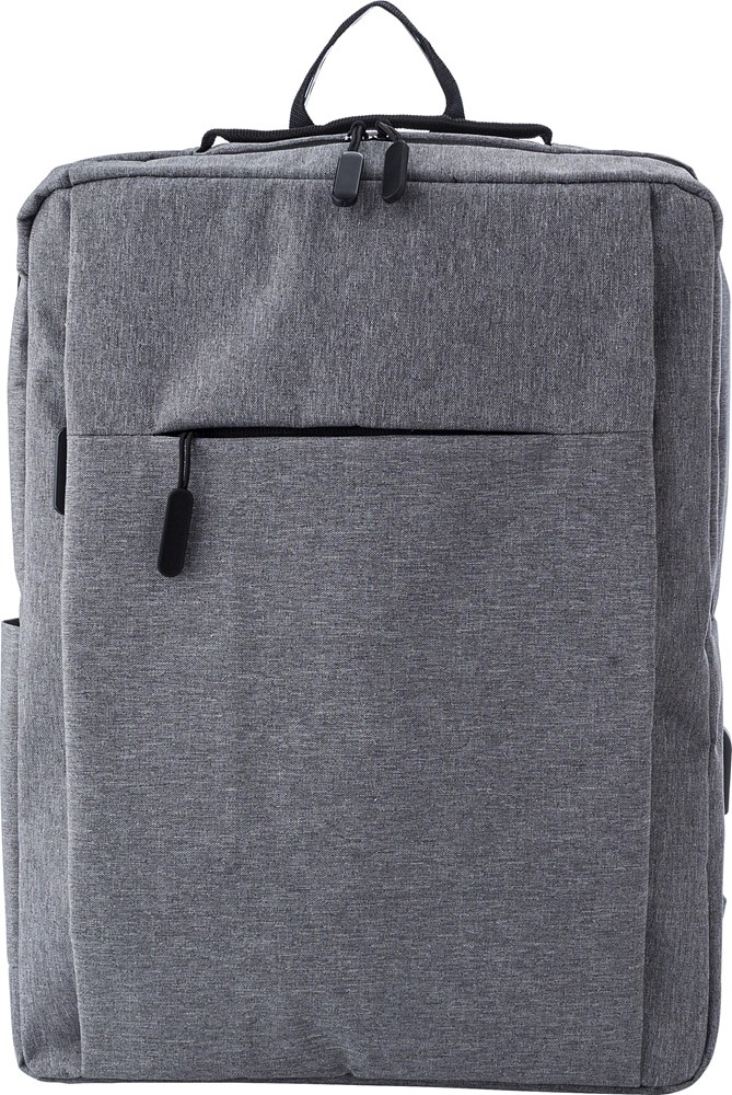 Polyester (600D) rugzak met hoofdvak met ritssluiting en voorvak. Met USB-uitgang aan de zijkant....