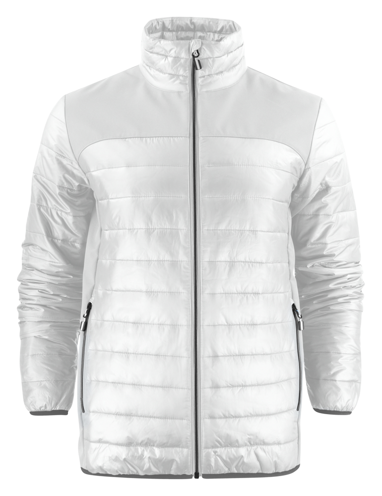 Lichte jas in twee materialen: juk en zijpanelen in softshell en body (voor-en achterzijde) en mouwen in lichtgewatteerd taffeta materiaal. Contrasterende ritssluiting. De zippullers kunnen indien gewenst vervangen worden door één van de andere beschikbare kleuren. De wattering is geproduceerd volgens het Blue Sign systeem dat een minimum inpact op mens en omgeving doorheen het volledige productieproces garandeert.