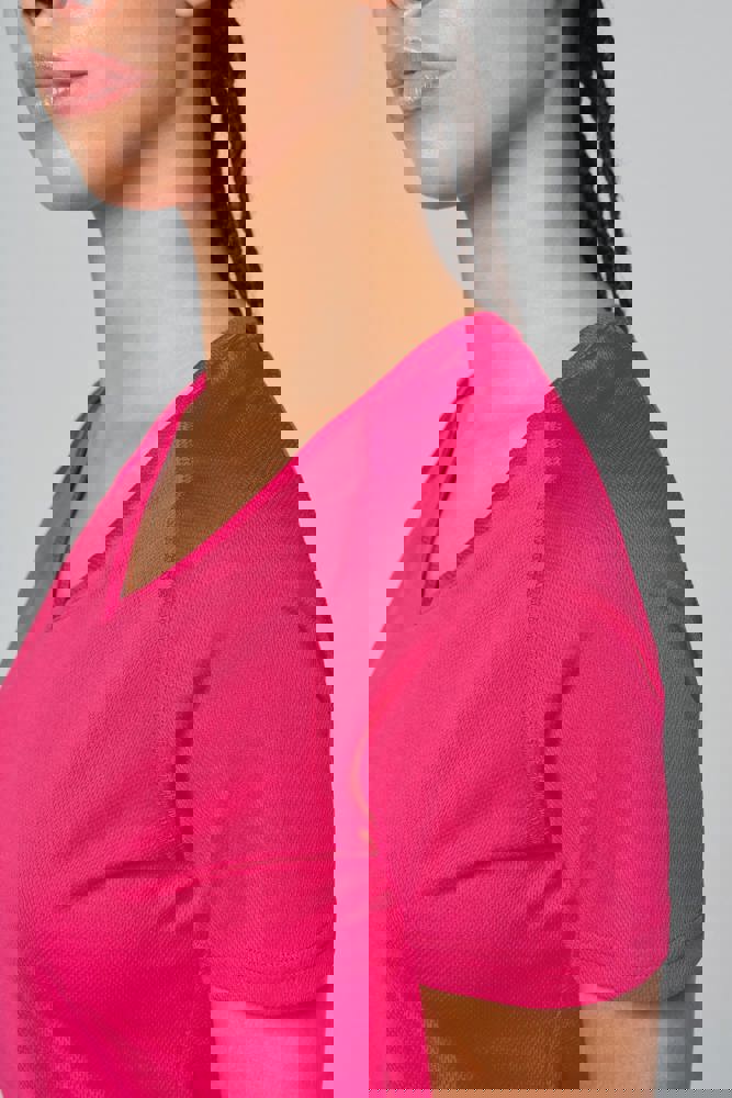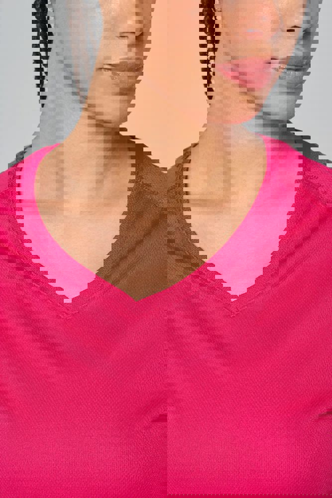100% polyester. Sneldrogende stof. V-hals met nektape. Raglanmouwen met overlocksteek. Dubbel...meer