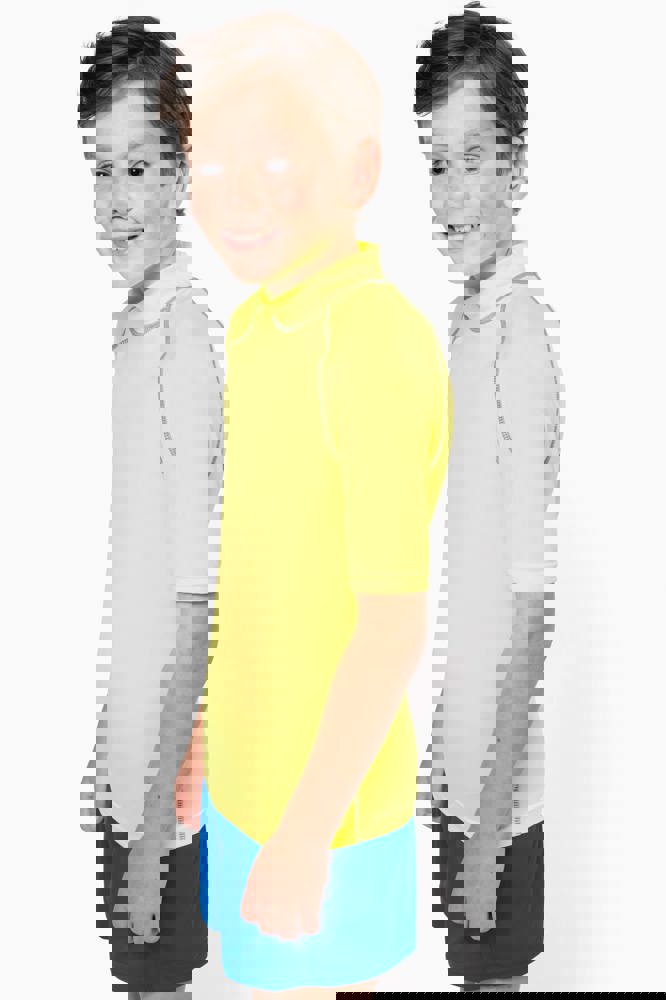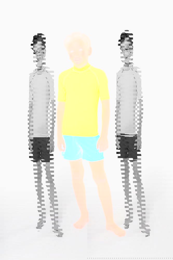88% polyester / 12% elasthan. Stretchtricot. Bescherming UV 40+ in overeenstemming met de EN13758-1&2-norm. Korte mouwen. Opstaande kraag. Heel nauw aansluitende snit. Elastische gesp in de zoom vooraan om het koordje van de short door te steken en het T-shirt zo op zijn plaats te houden. Contrasterende stiksels. Mouwuiteinden en onderkant afgewerkt met dubbel stiksel.