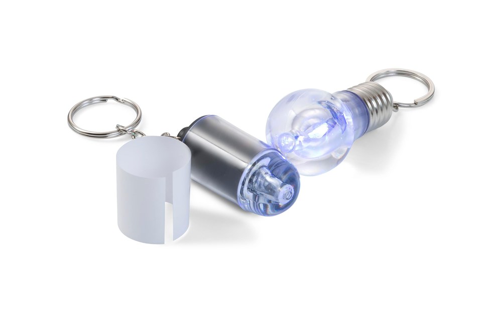 Kunststof sleutelhanger, model 'lamp', met wit licht, incl. batterijen.